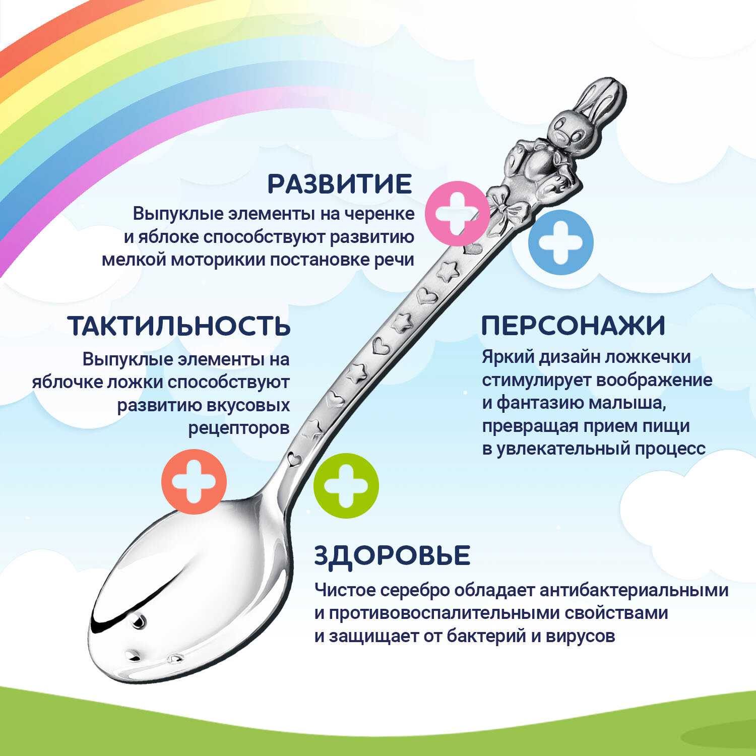 Ложка детская серебряная для кормления "Зайка" с чернением в футляре интересное: