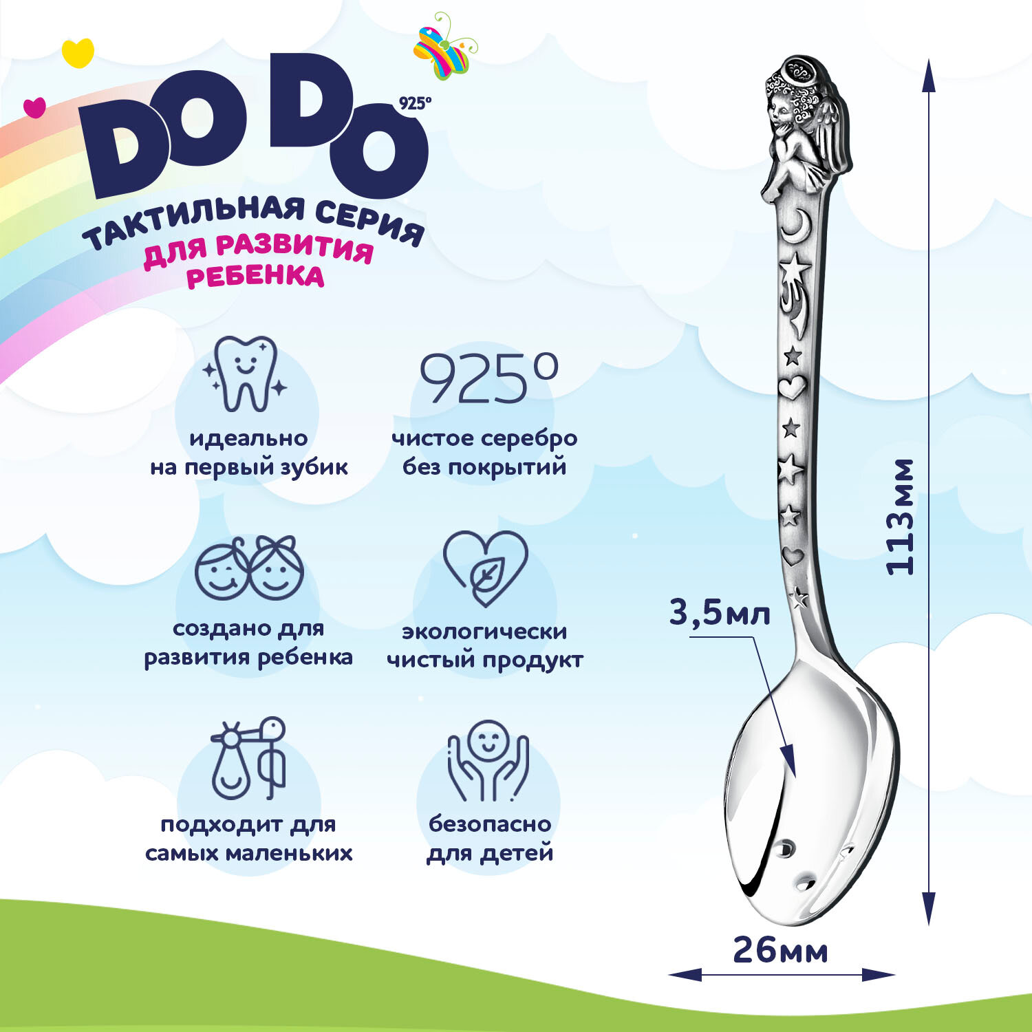 Ложка детская серебряная для кормления "Ангел" с чернением в футляре интересное: