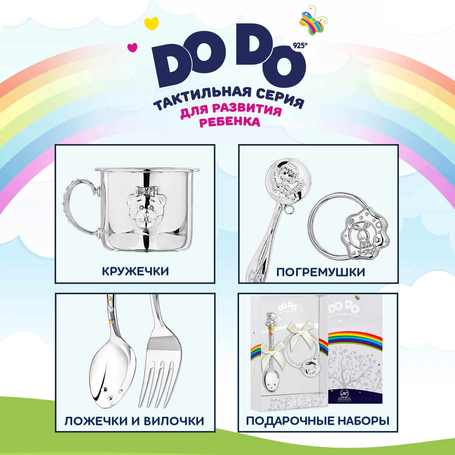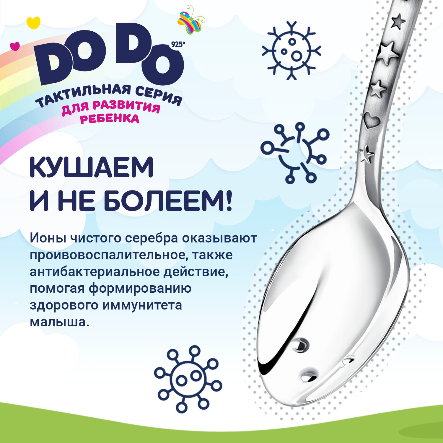 Серебряная детская ложка АргентА Сердце с цветами DoDo с футляром