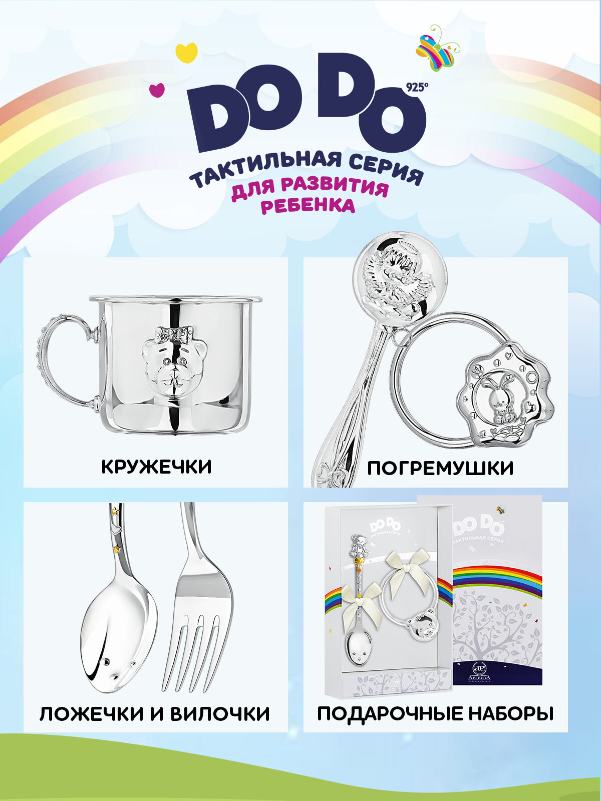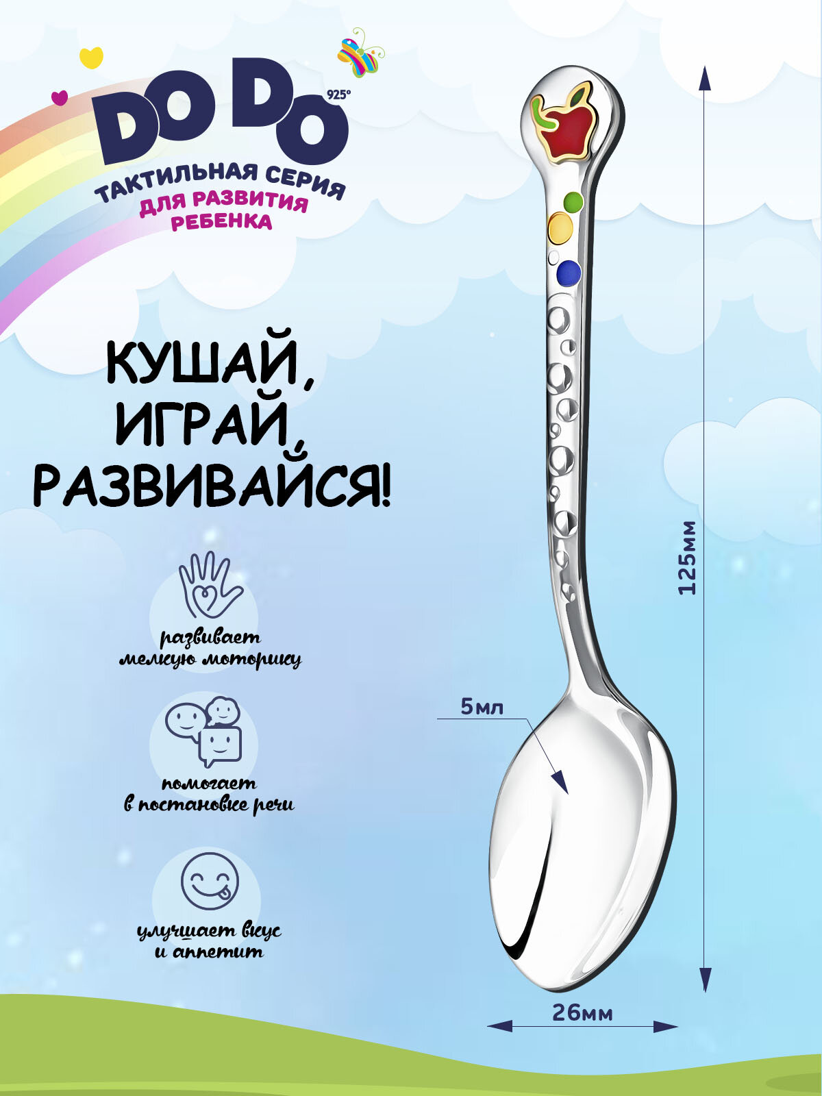 Серебряная детская ложка АргентА Сердце с цветами DoDo с футляром