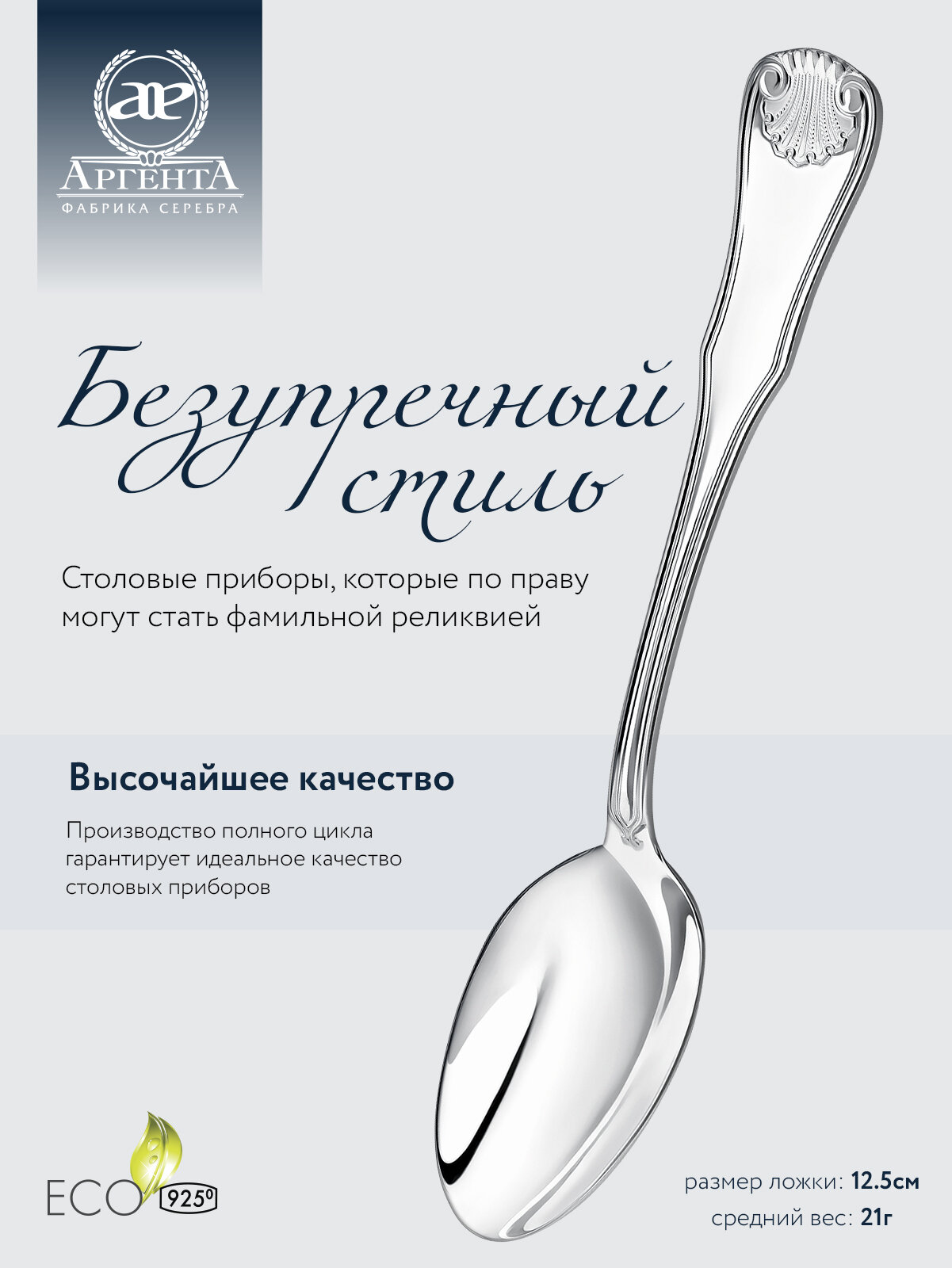 Серебряная чайная ложка с логотипом "Е" с позолотой от бренда "Аргента"