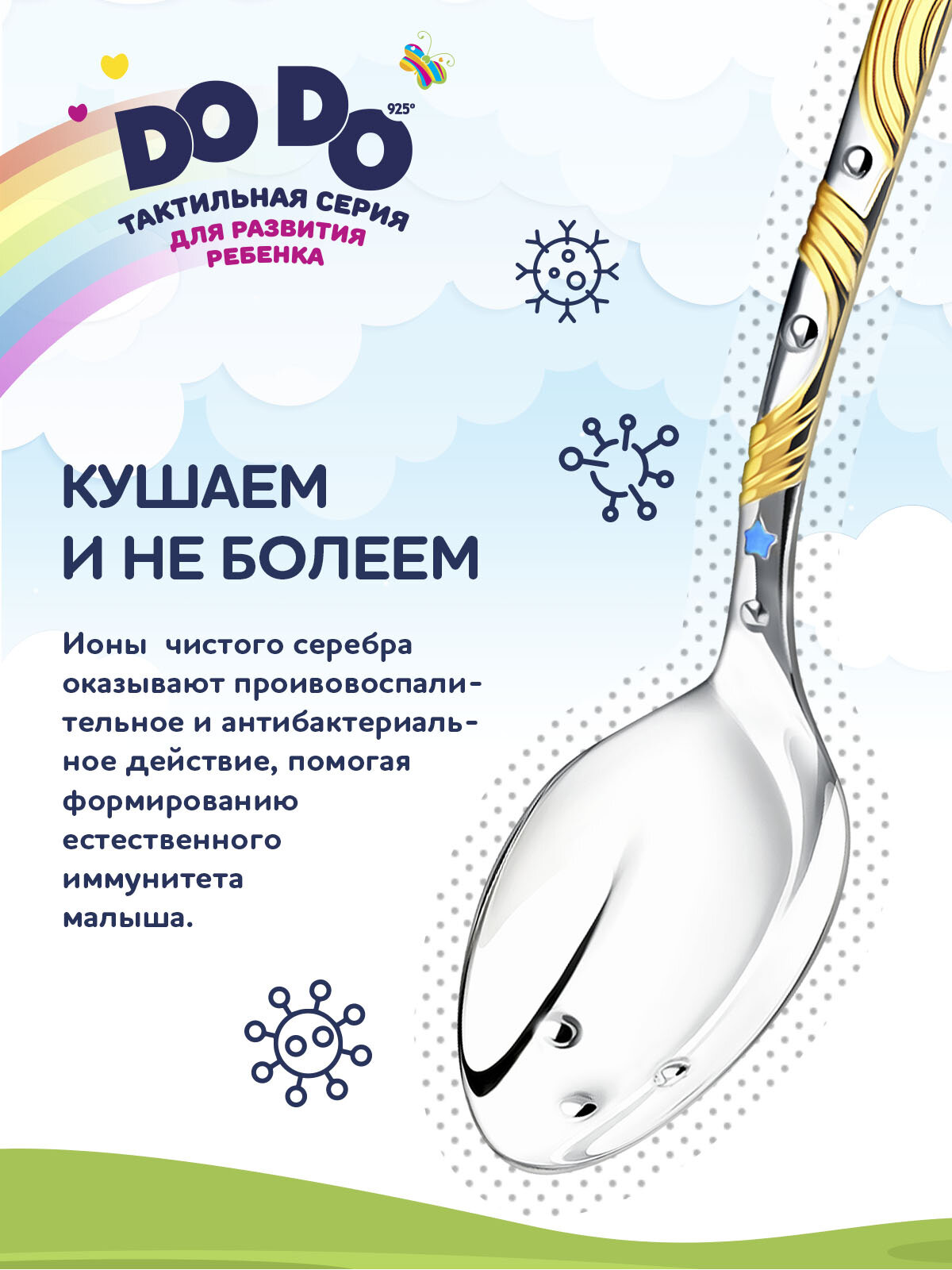 Ложка детская серебряная для кормления "Единорог" с позолотой с голубой эмалью в футляре интересное: