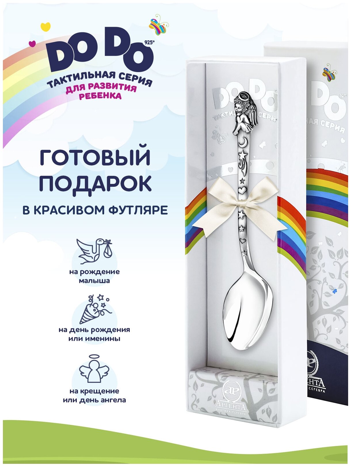 Серебряная детская ложка DoDo АргентА Ангел с чернением в футляре интересное: