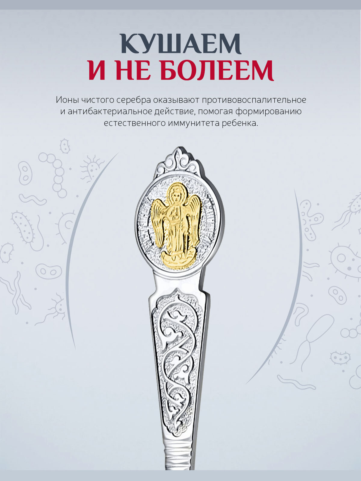 Серебряная чайная ложка с логотипом "Е" с позолотой от бренда "Аргента"