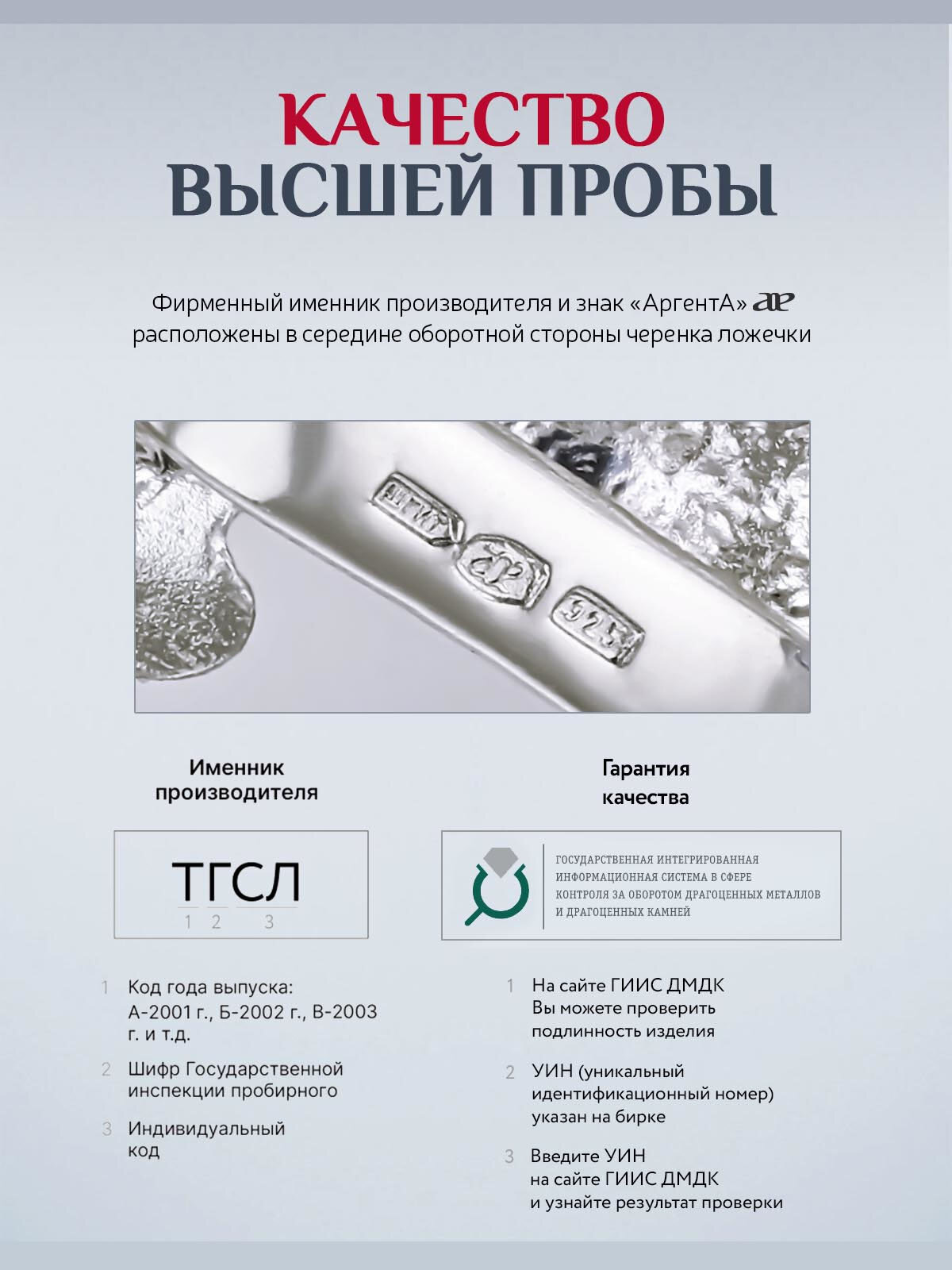 Серебряная чайная ложка с логотипом "Е" с позолотой от бренда "Аргента"
