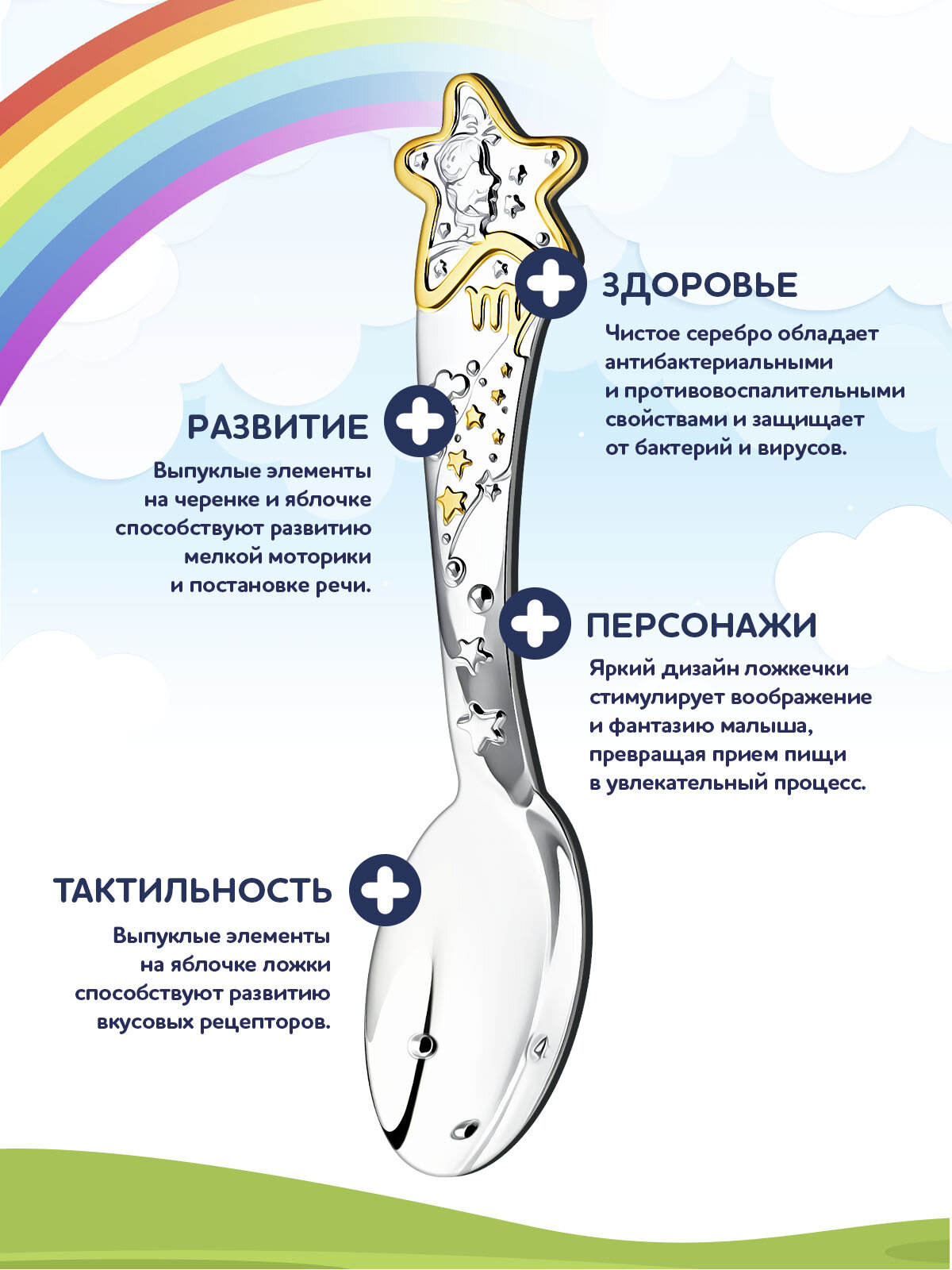 Ложка детская серебряная для кормления "Зодиак -Дева" с позолотой в футляре интересное: