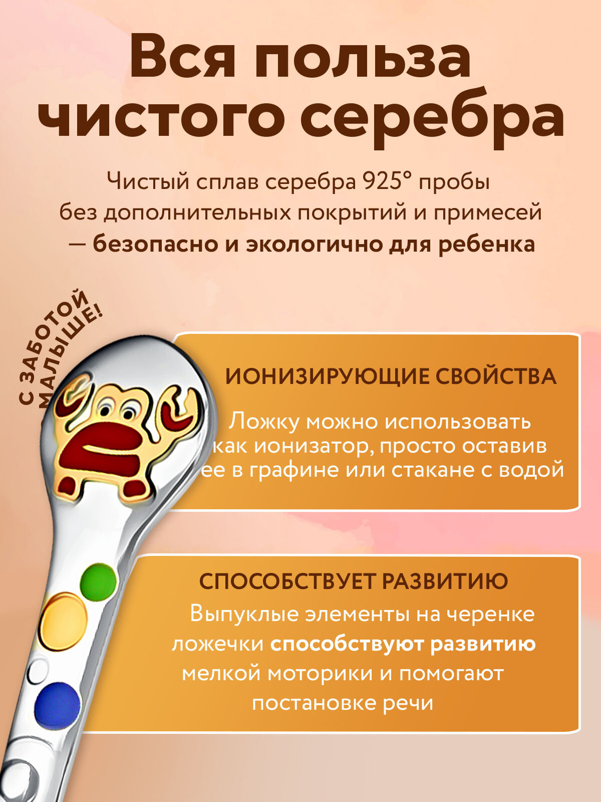 Серебряная ложка детская для кормления Аргента "Крабик" с позолотой и эмалью интересное: