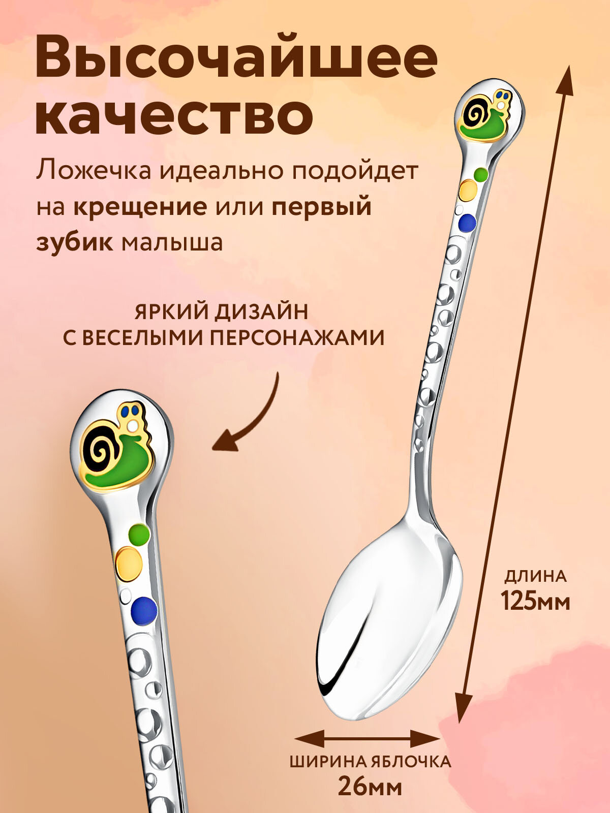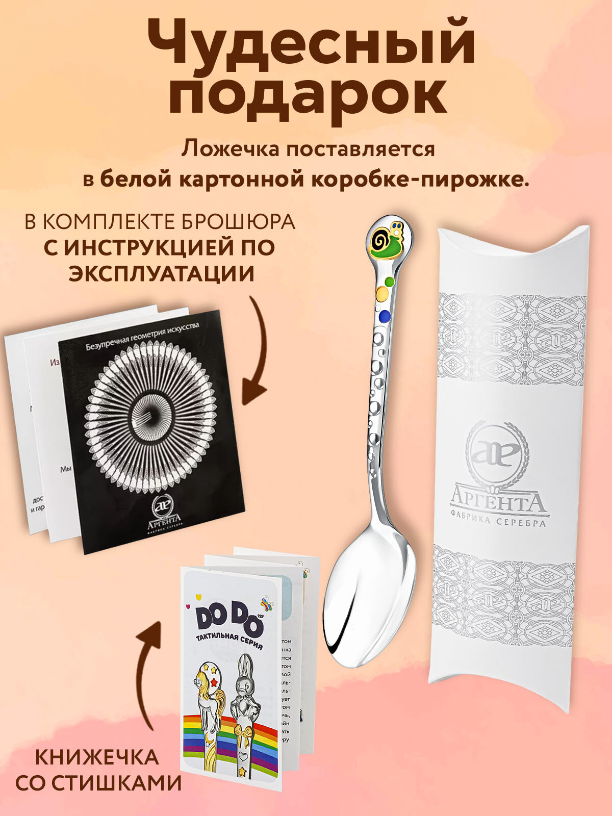 Серебряная ложка детская для кормления Аргента "Улитка" с позолотой и с эмалью интересное: