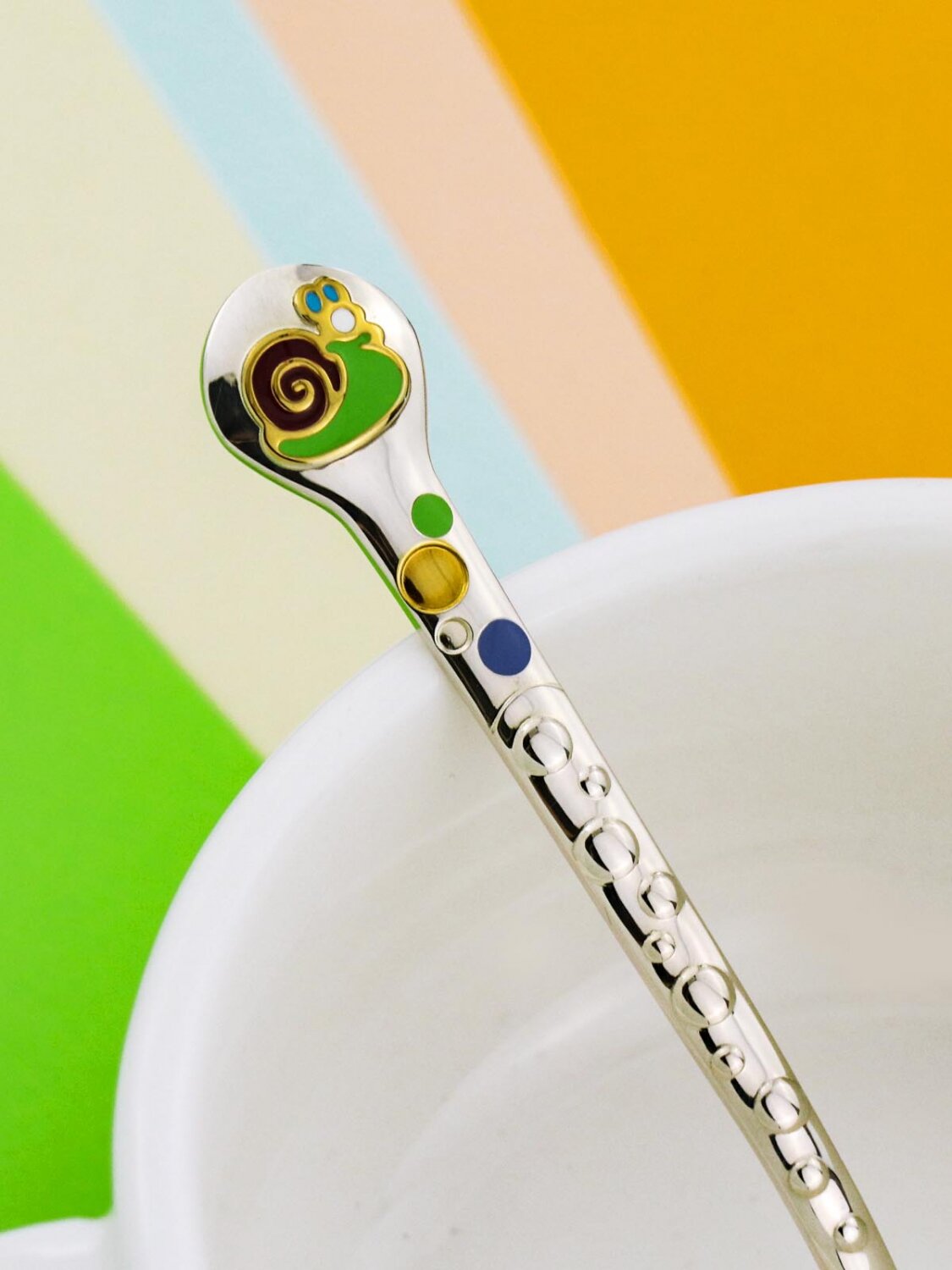 Купить Серебряная ложка детская для кормления Аргента "Улитка" с позолотой и с эмалью