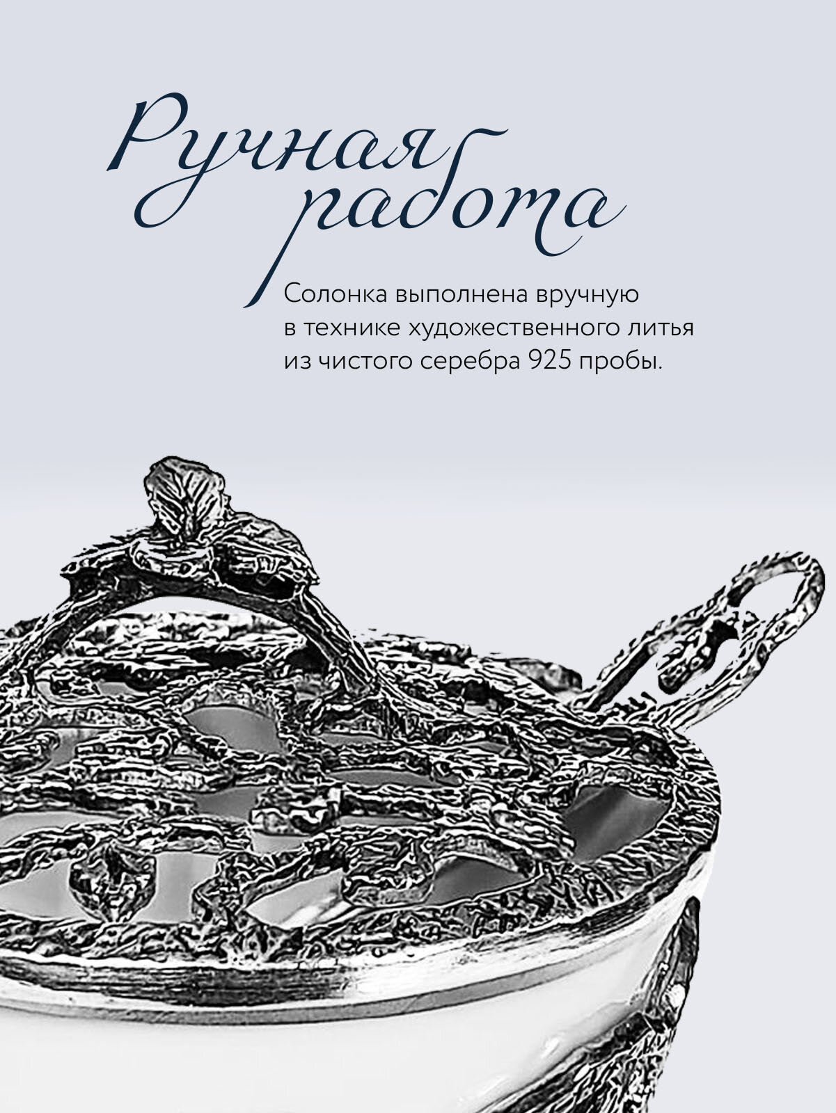 Купить Солонка Аргента "Листопад" с чернением в футляре Серебро и фарфор