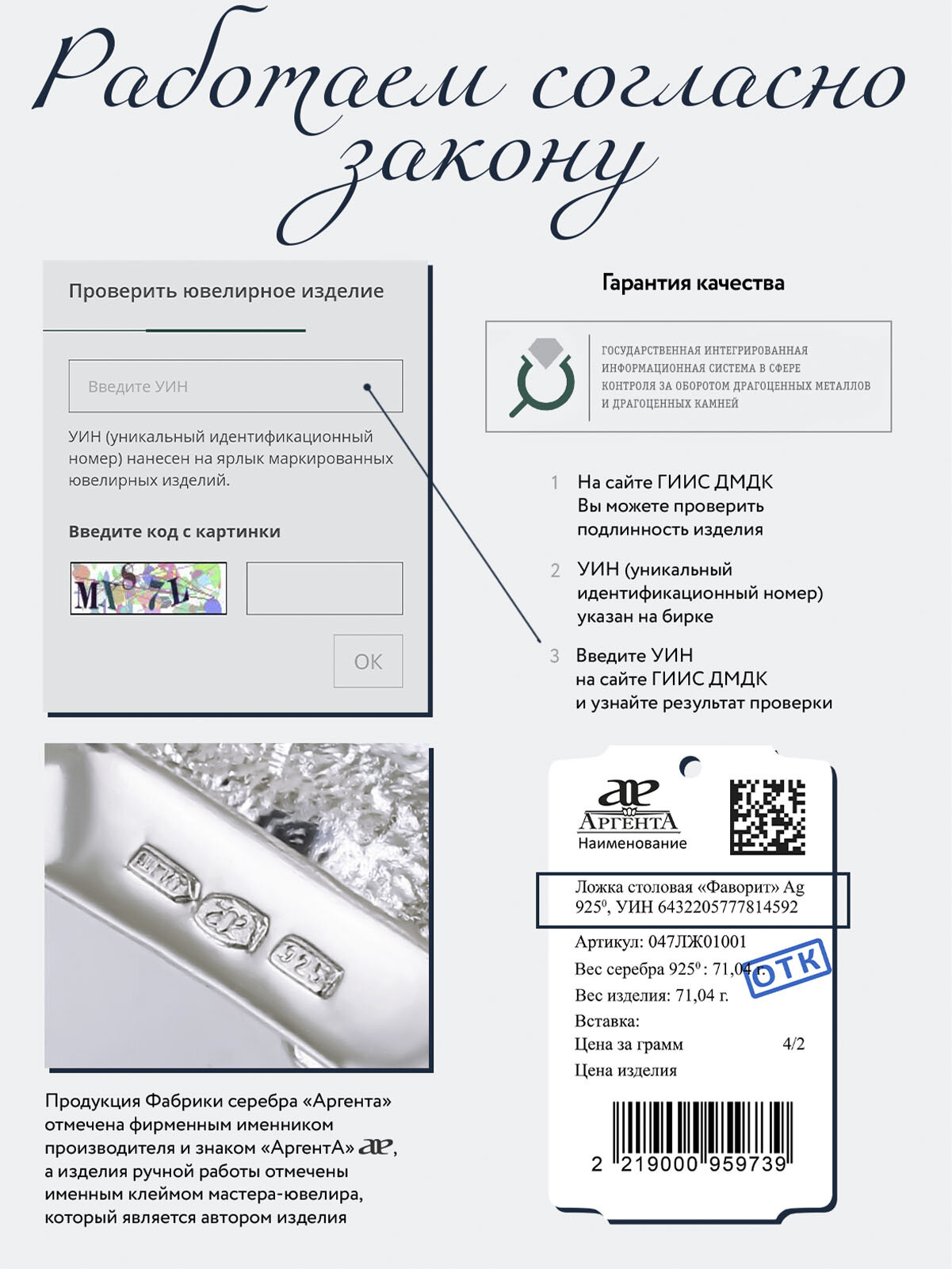 Серебряная чайная ложка с логотипом "Е" с позолотой от бренда "Аргента"
