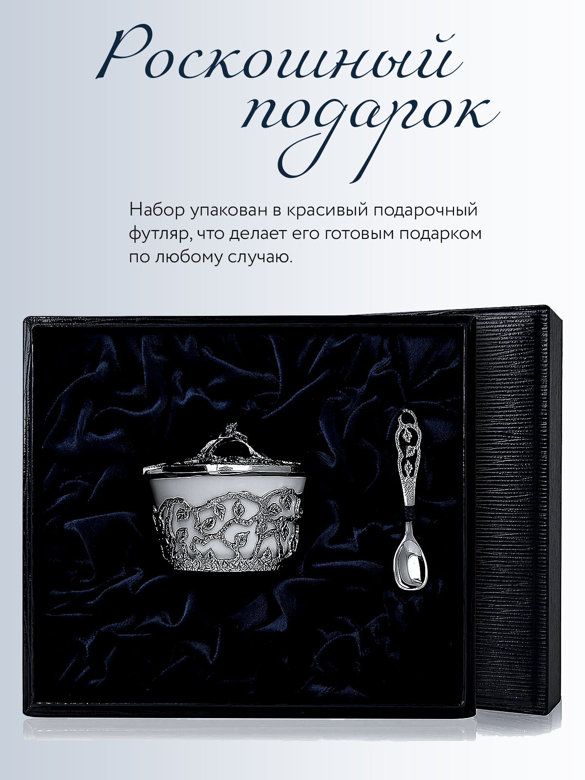 Солонка Аргента "Листопад" с чернением в футляре Серебро и фарфор интересное: