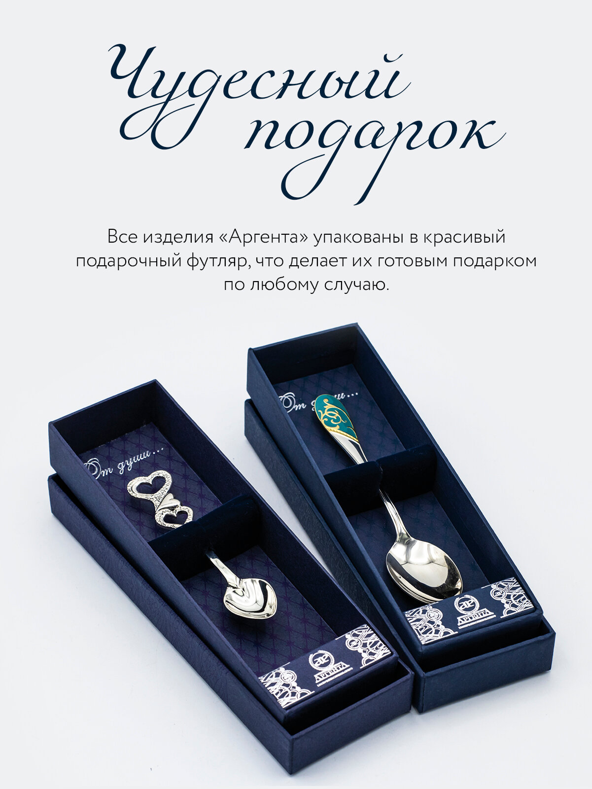 Серебряная чайная ложка с логотипом "Дева" с позолотой от бренда "Аргента" интересное: