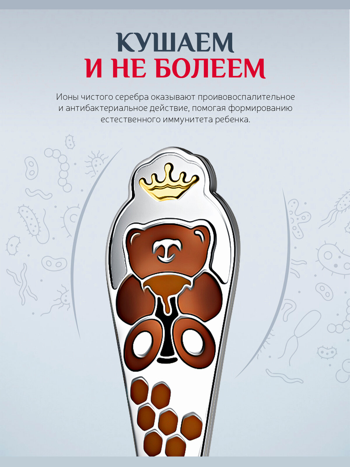Ложка детская серебряная для кормления "Мишка" с позолотой с эмалью в футляре интересное: