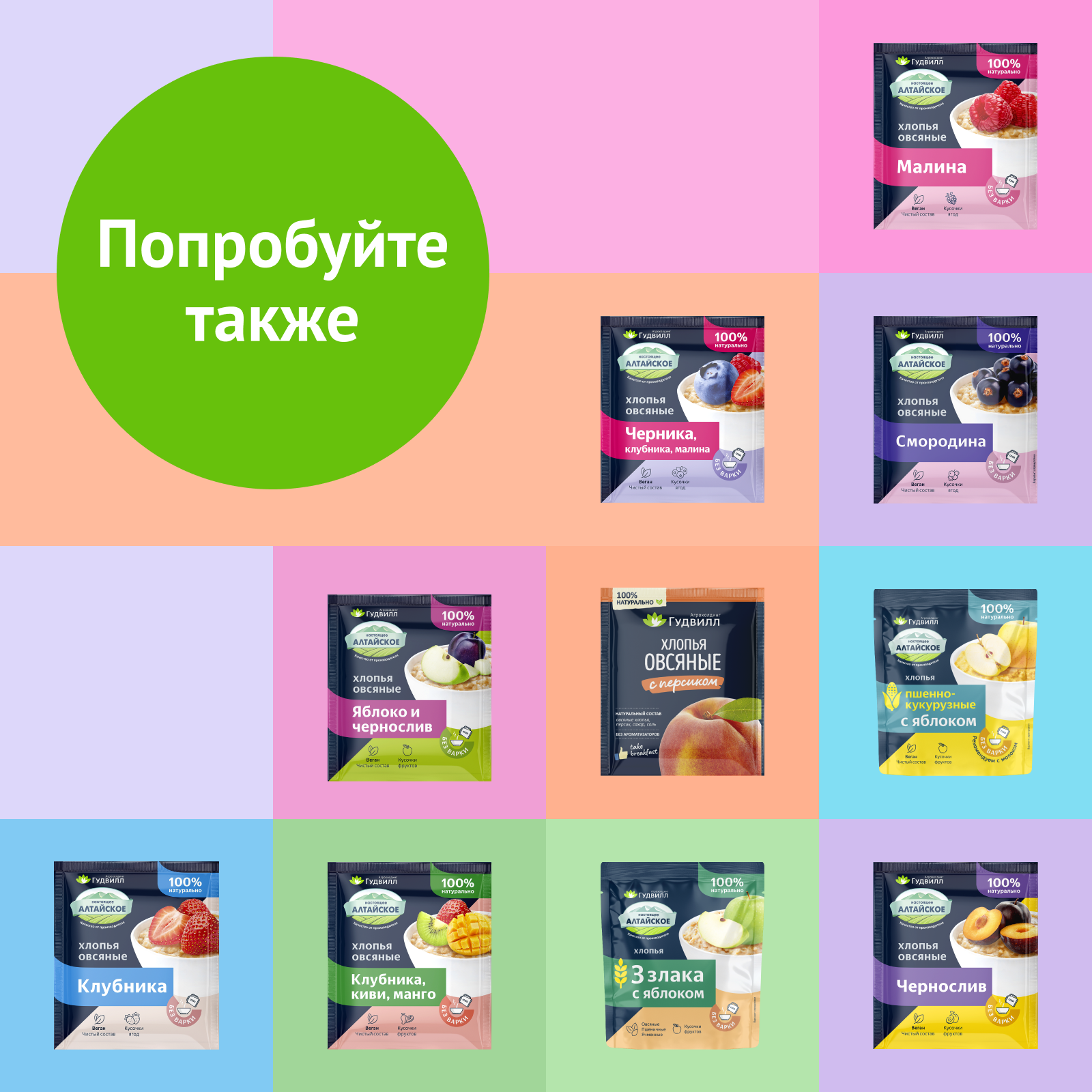 Каша овсяная быстрого приготовления с персиком, Гудвилл, 17 пакетиков по 40 г