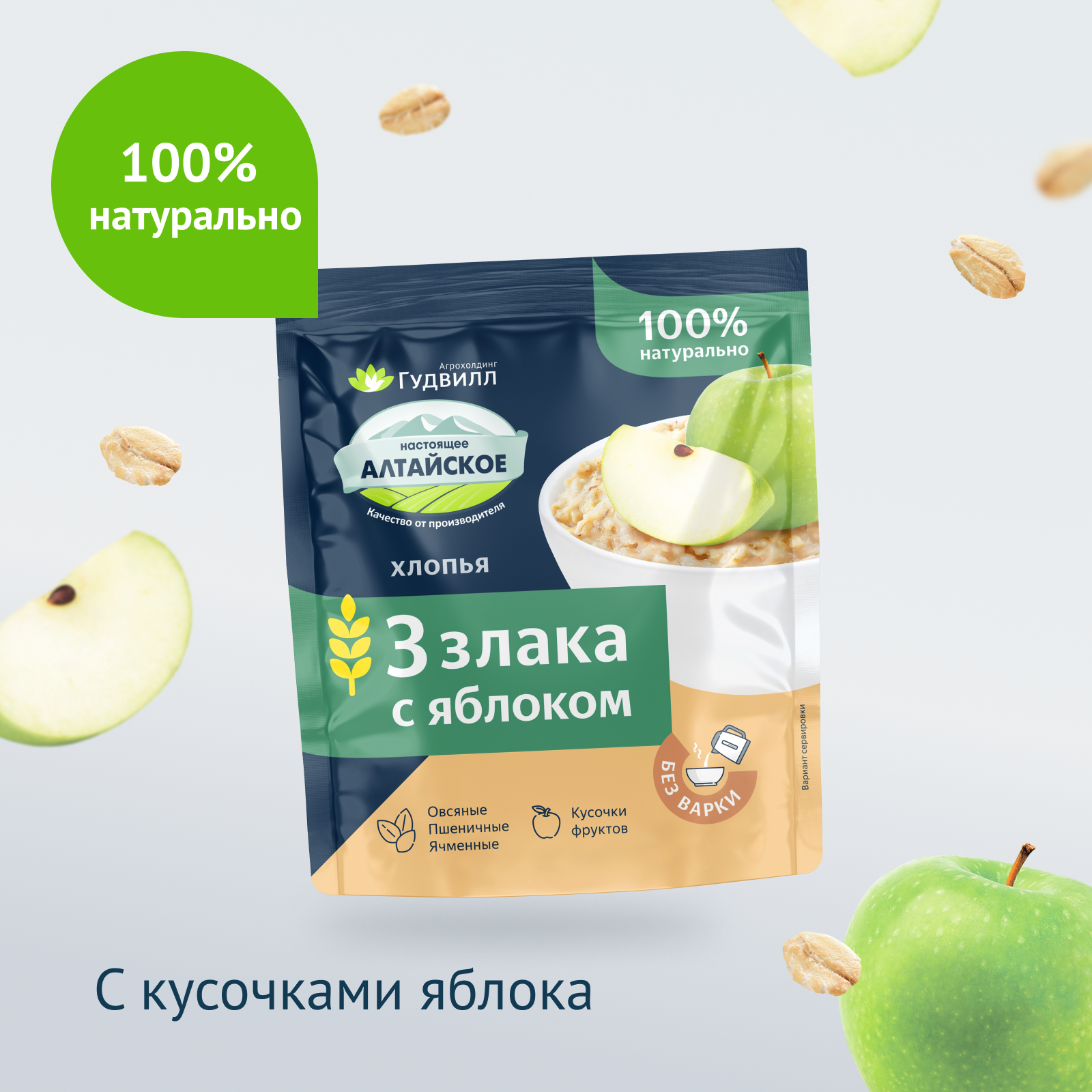Купить Каша быстрого приготовления 3 злака с яблоком, Гудвилл, 17 пакетиков по 40 г