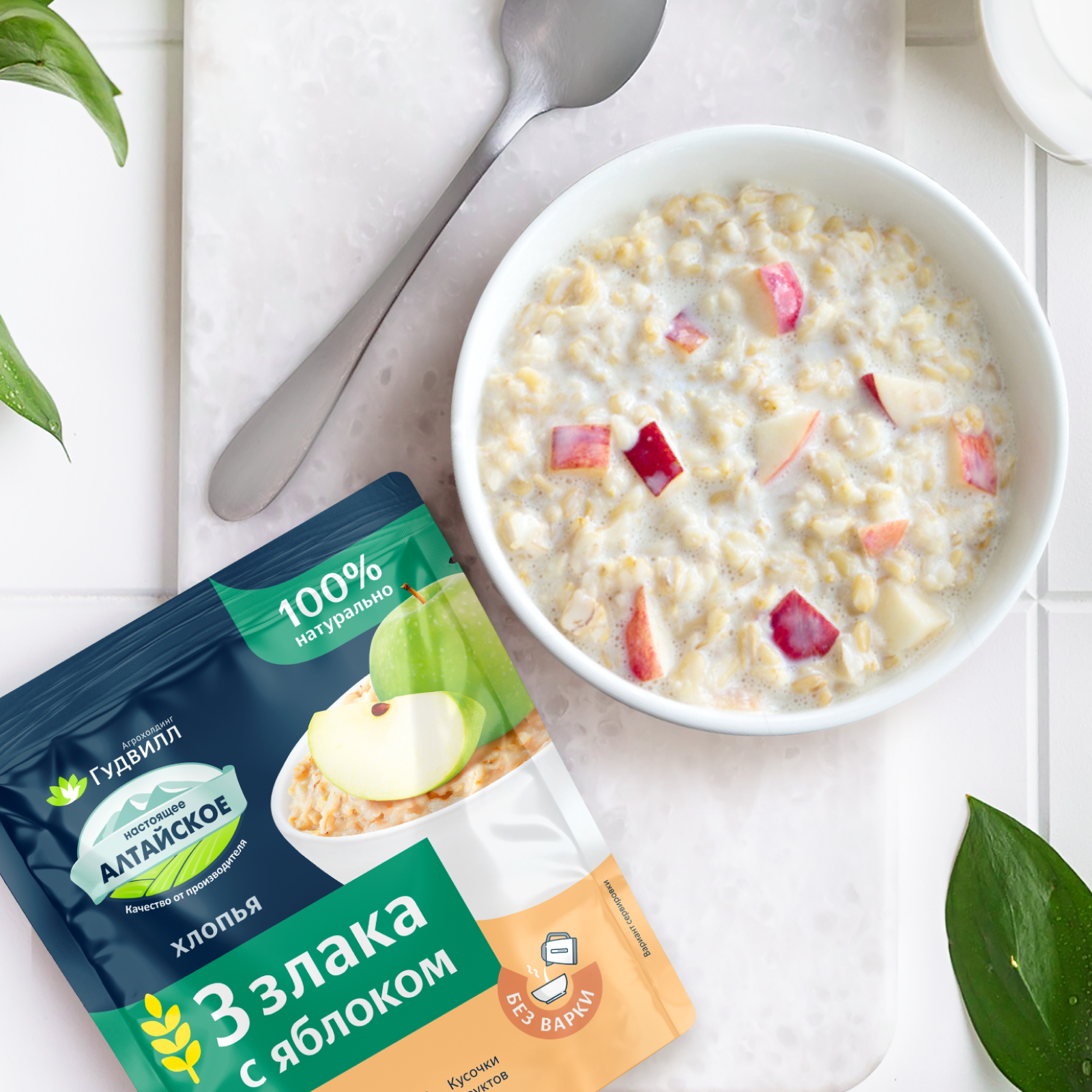 Каша быстрого приготовления 3 злака с яблоком, Гудвилл, 17 пакетиков по 40 г интересное: