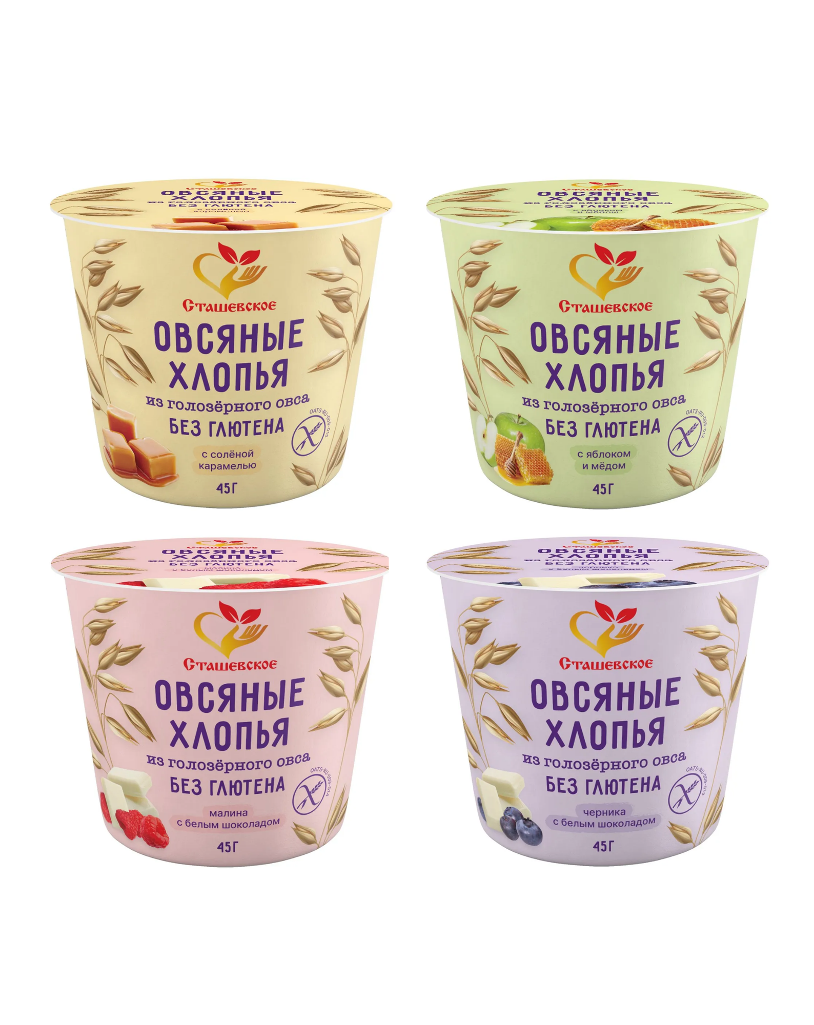 Овсяные хлопья из голозёрного овса в ассортименте в стаканчике, 45 г (4 шт), т. м. Сташевское интересное: