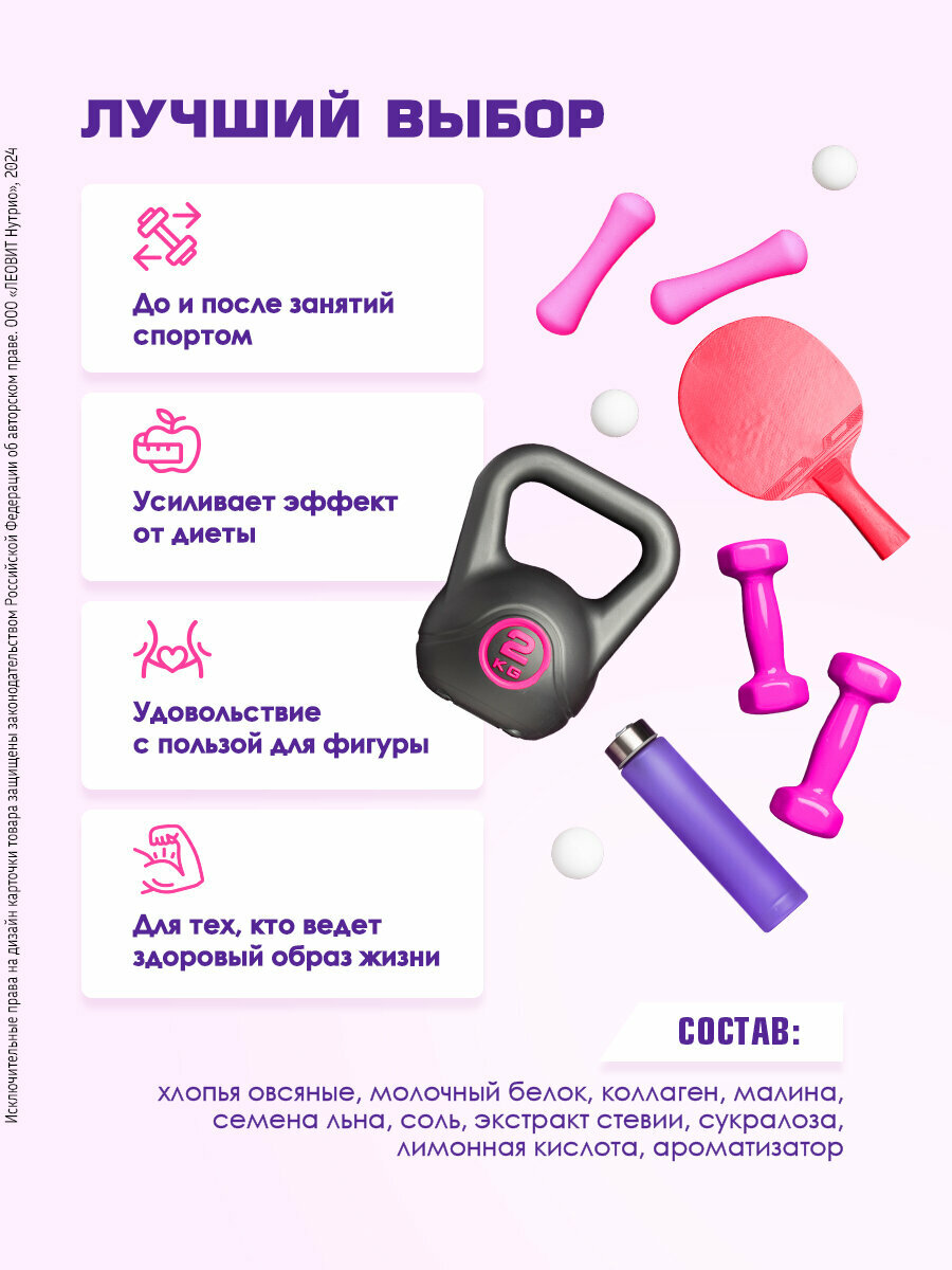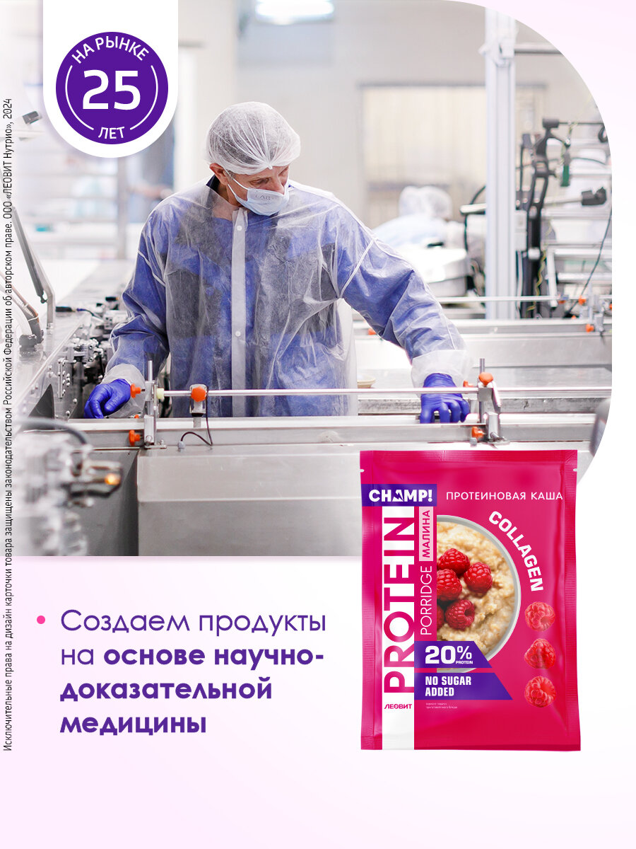 Каша протеиновая овсяная без сахара малиновая 10 шт 40 г с коллагеном Champ ЛЕОВИТ 20% протеина быстрого приготовления интересное:
