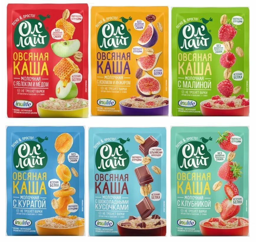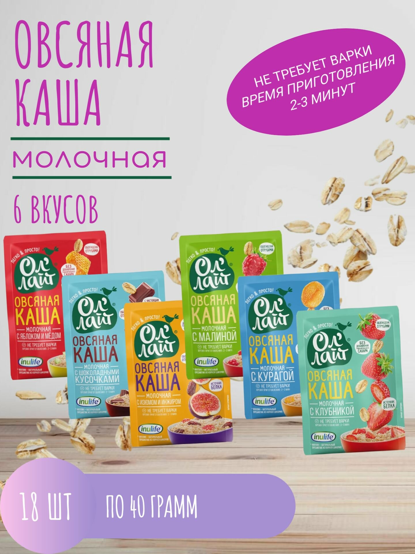 Купить Овсяная каша быстрого приготовления молочная без сахара Ол лайт, 6 разных вкусов, 18 шт по 40 г