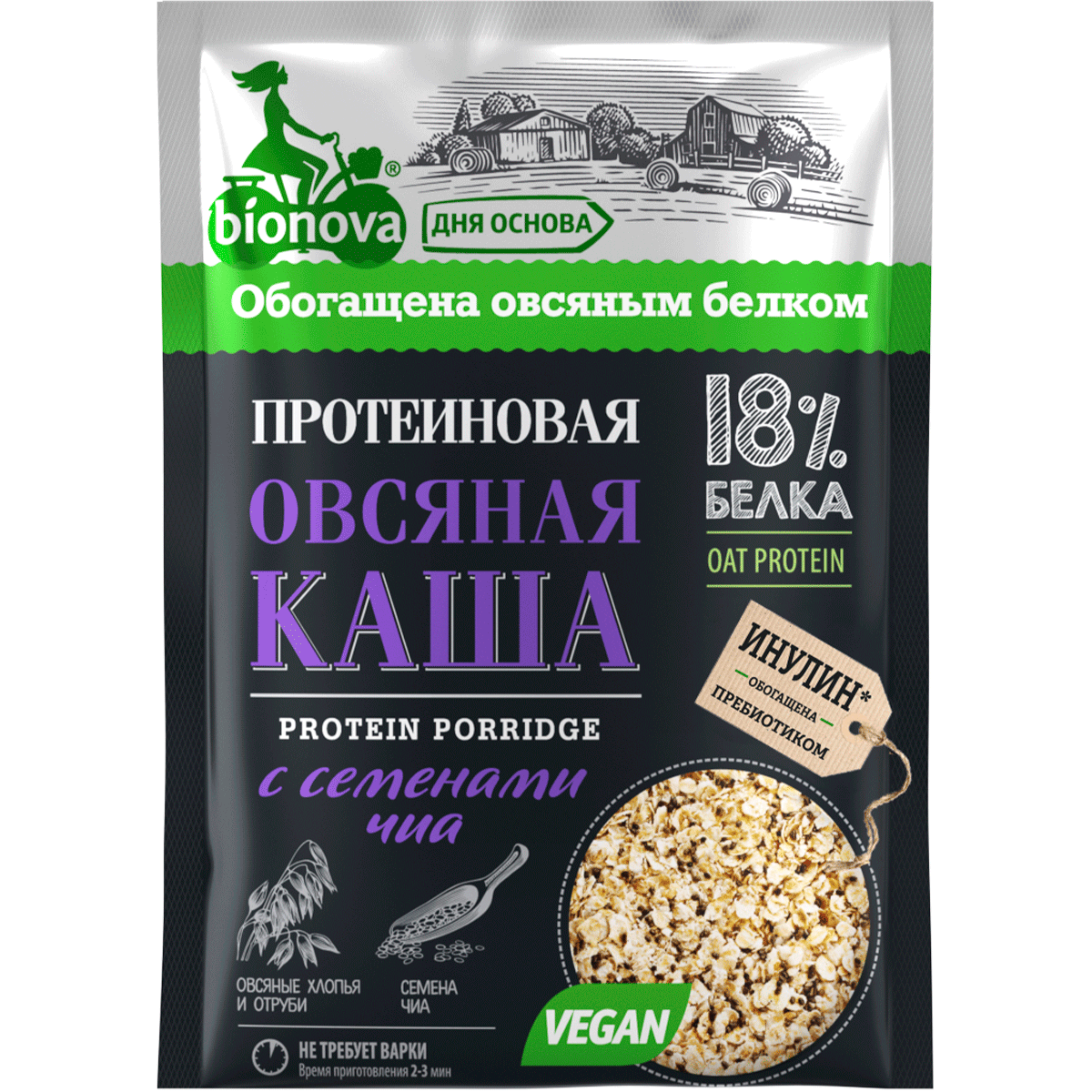 BIONOVA Протеиновая овсяная каша быстрого приготовления в пакетикахс семенами чиа, порционная, 14 пак. по 40 г интересное: