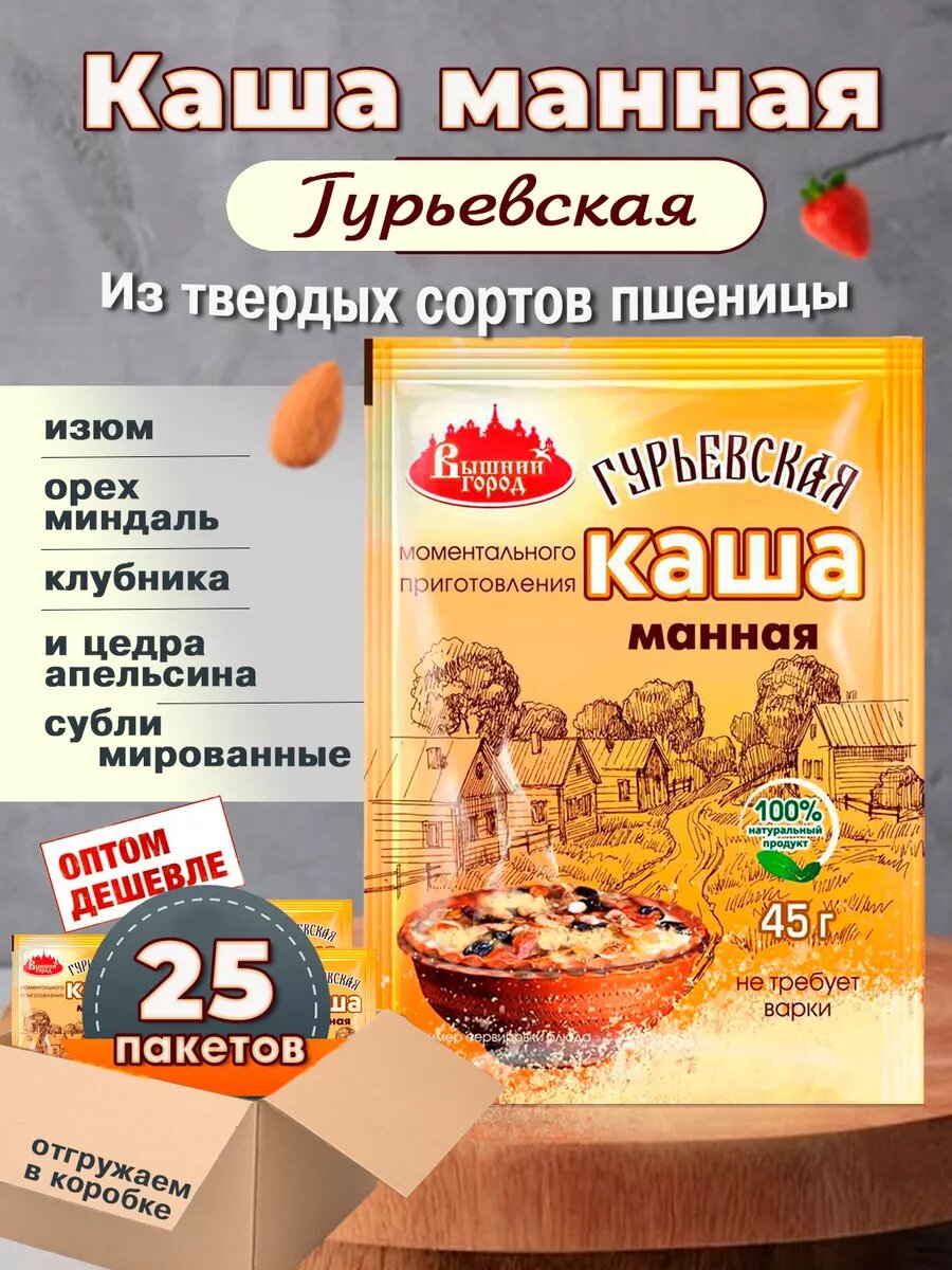 Манная каша Гурьевская Вышний город из твердых сортов пшеницы, с ягодами, 25 пакетиков интересное:
