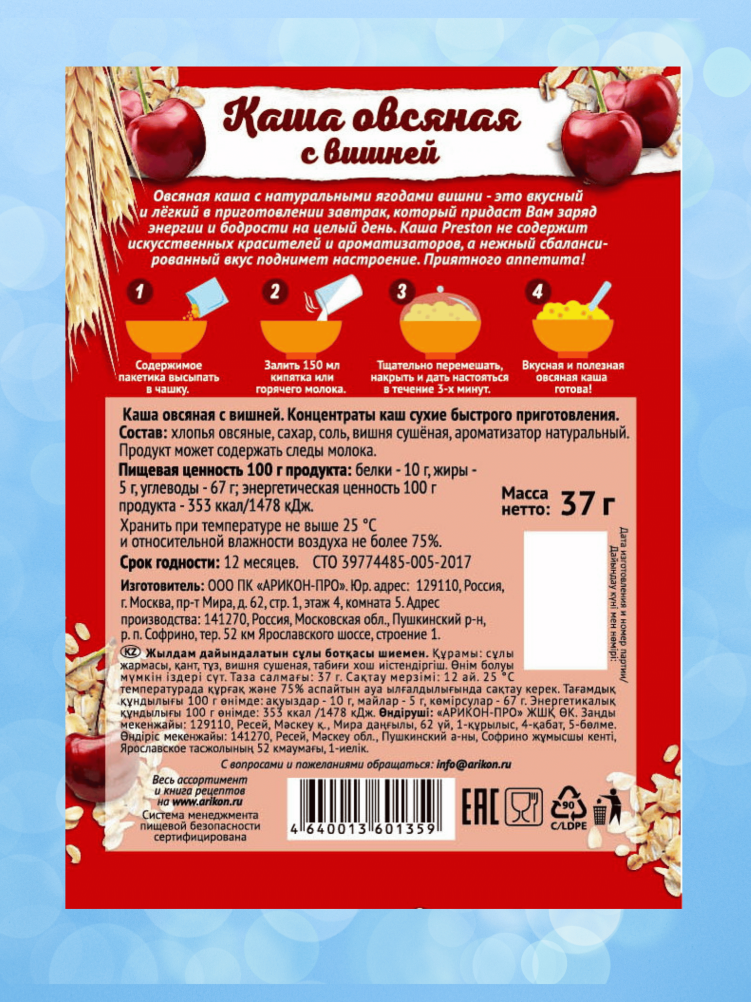 СохранитьКаша овсяная быстрого приготовления Preston, в пакетиках 37 г, Ассорти 10 вкусов, 30 шт. интересное: