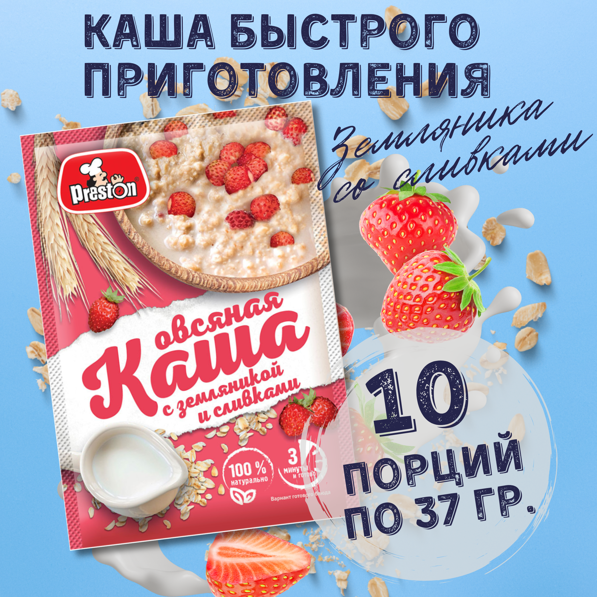Каша овсяная быстрого приготовления Preston с Клубникой, в пакетиках 37 г, 10 шт.