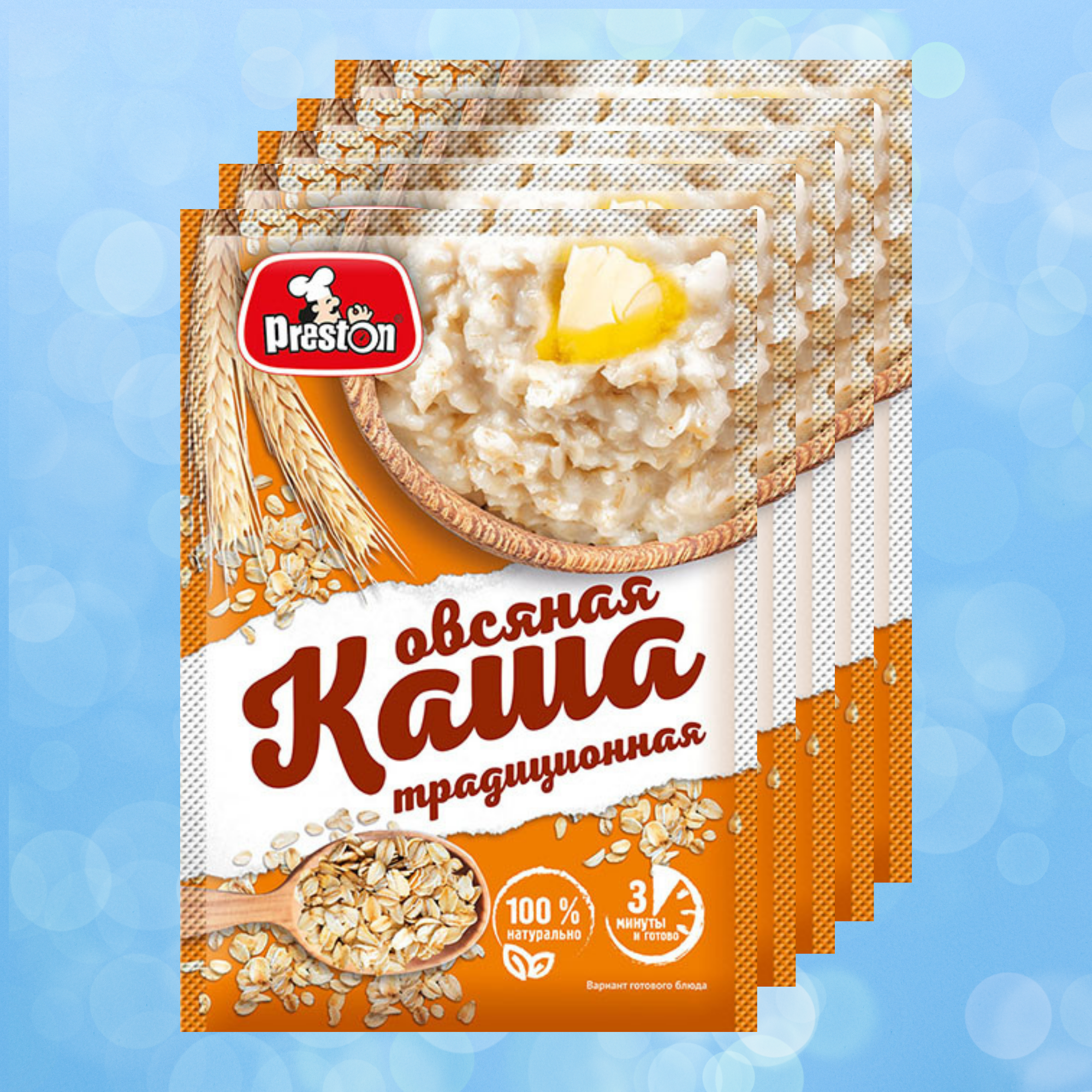 Каша овсяная быстрого приготовления Preston Традиционная, в пакетиках 37 г, 10 шт.