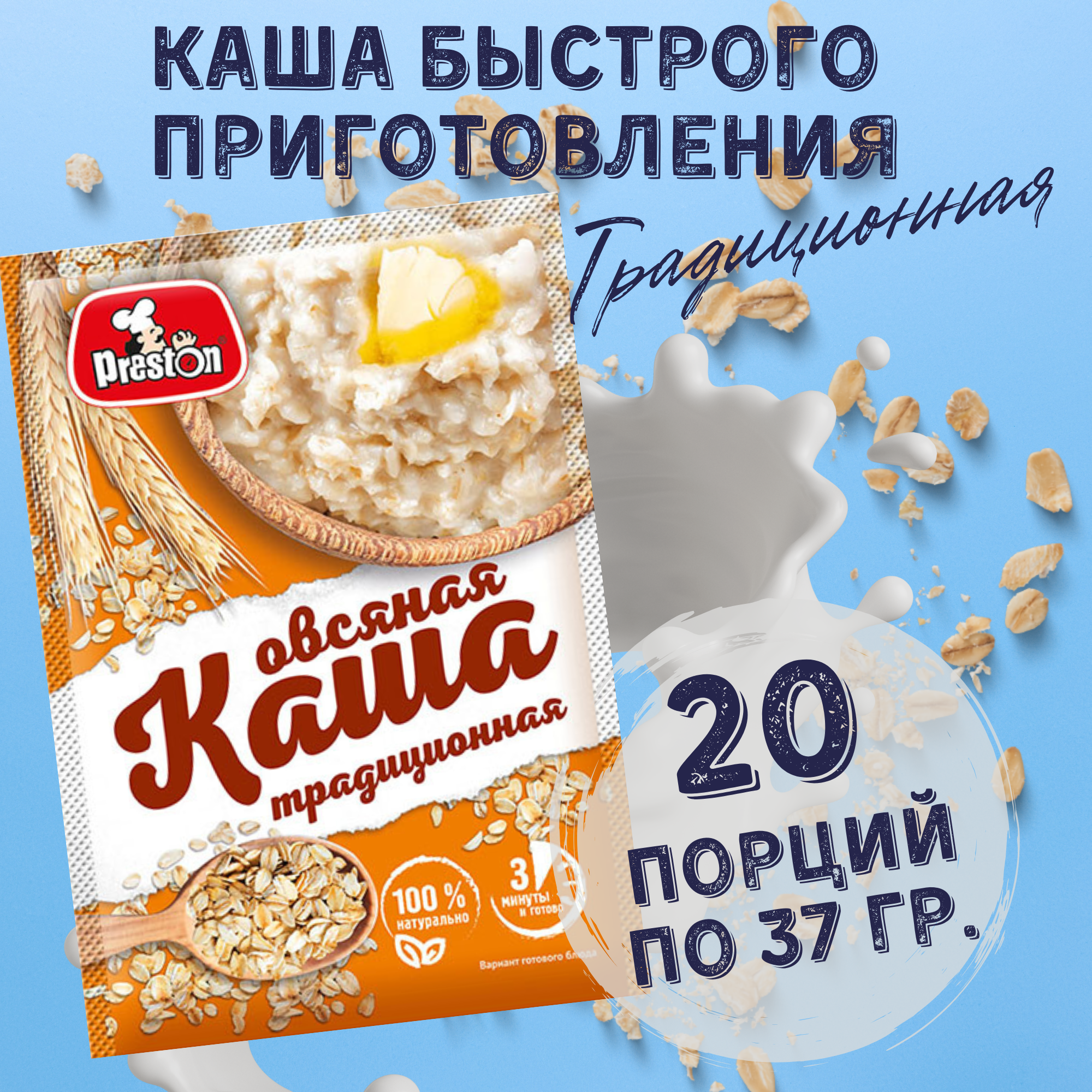 Купить Каша овсяная быстрого приготовления Preston Традиционная, в пакетиках 37 г, 20 шт.