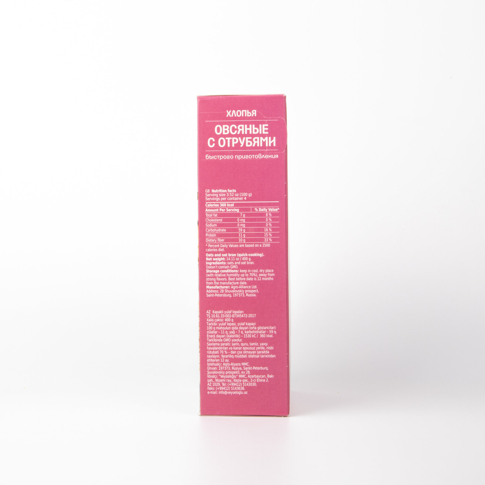Купить Хлопья АгроАльянс Овсяные с отрубями 400г (12), без сахара, 4 упаковки