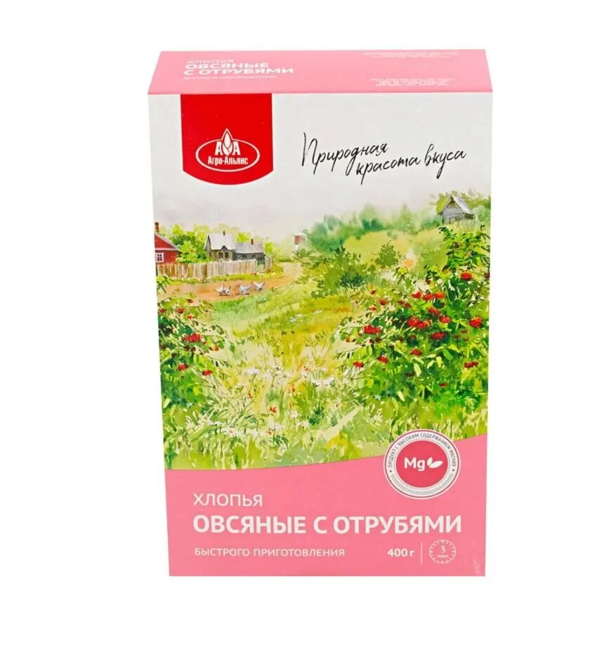 Хлопья АгроАльянс Овсяные с отрубями 400г (12), без сахара, 4 упаковки интересное: