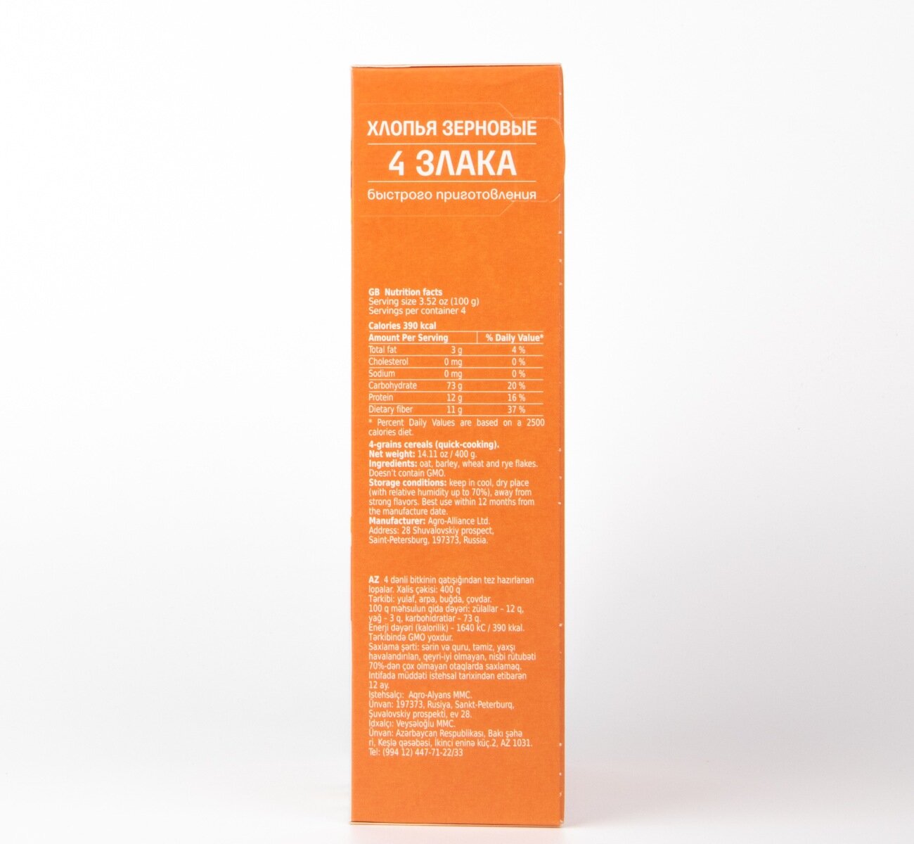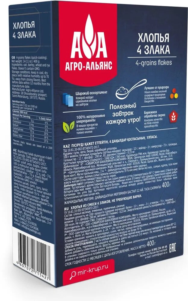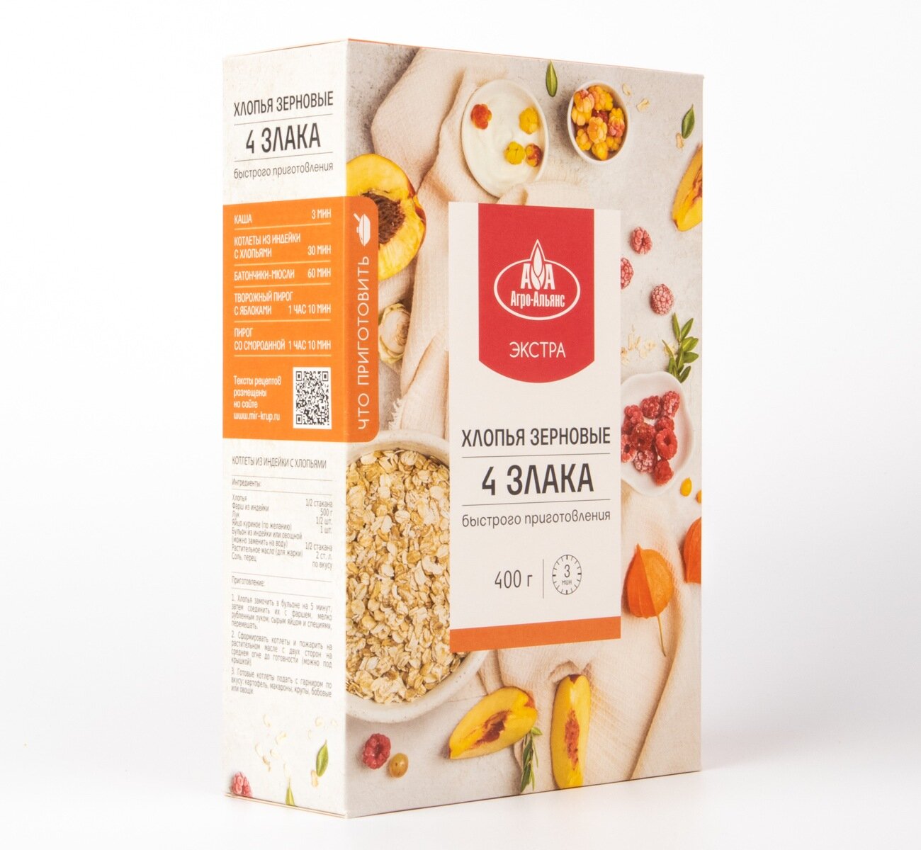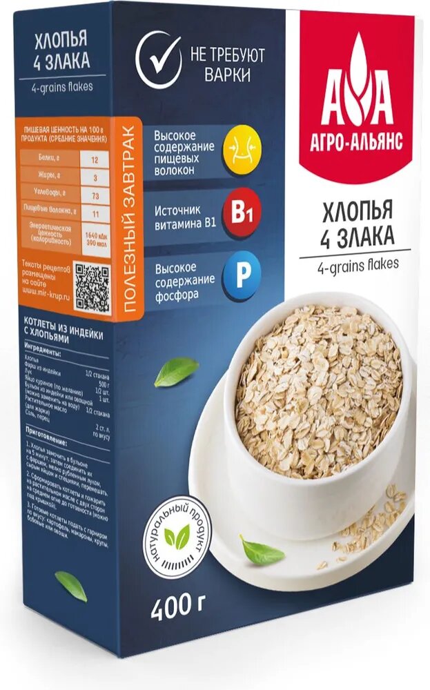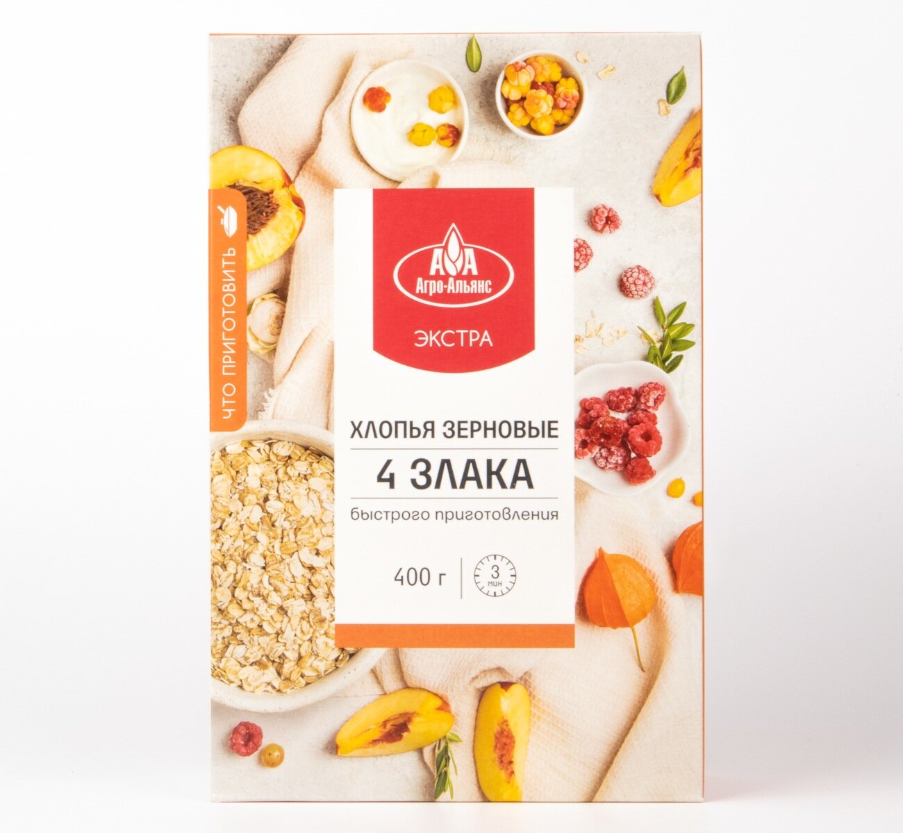 Хлопья АгроАльянс 4 злака быстр приготовления 400г, 4 упаковки интересное: