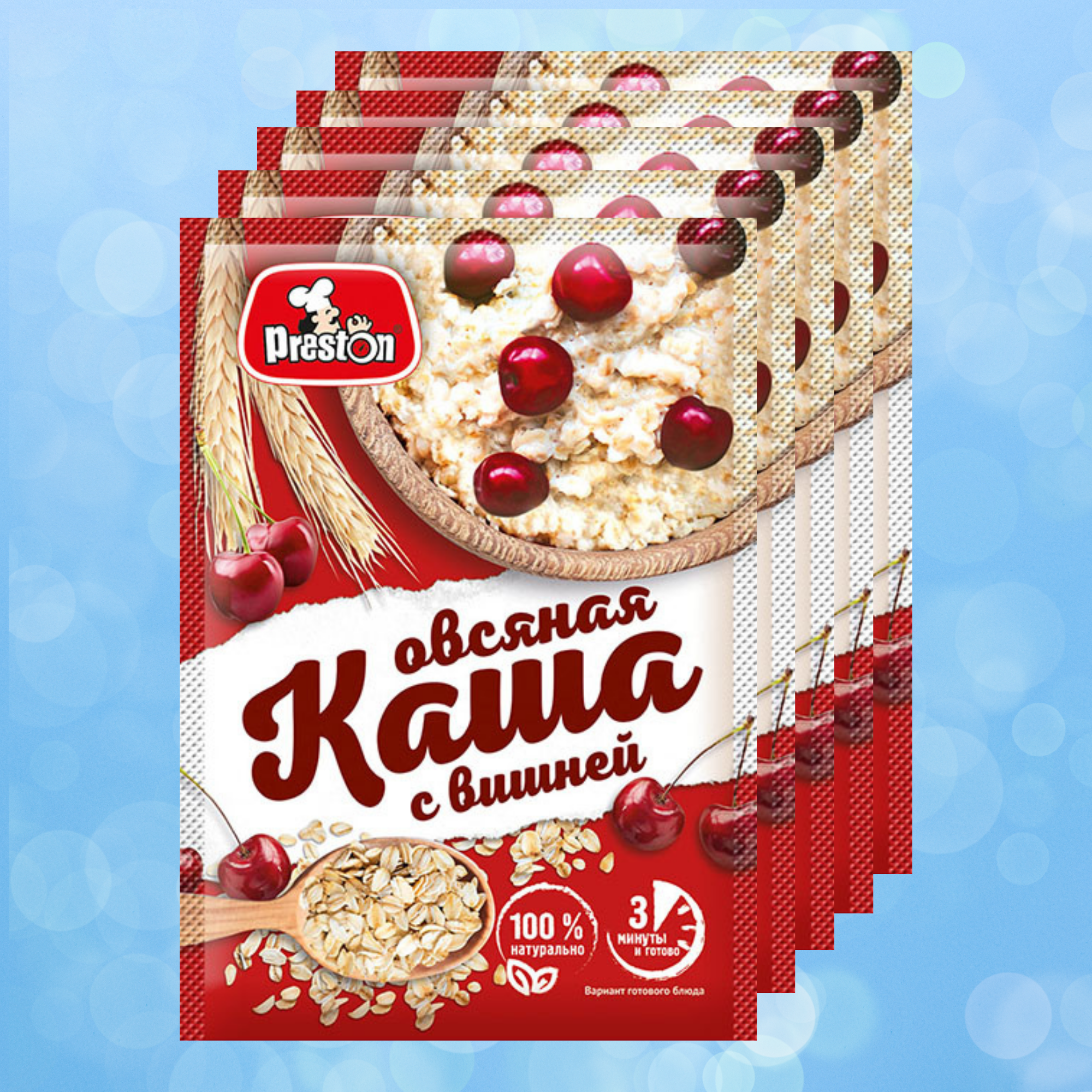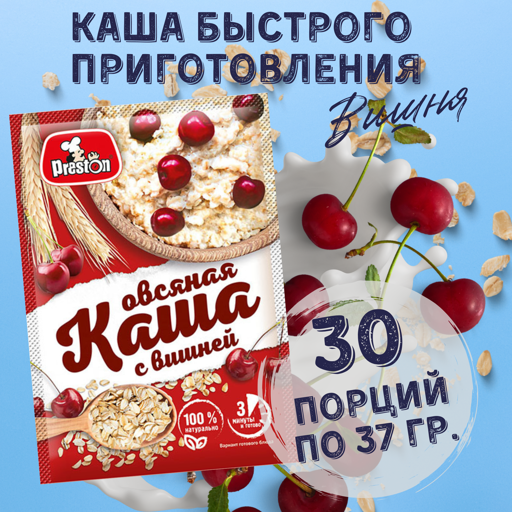 Каша овсяная быстрого приготовления Preston с вишней, в пакетиках 37 г, 30 шт. интересное: