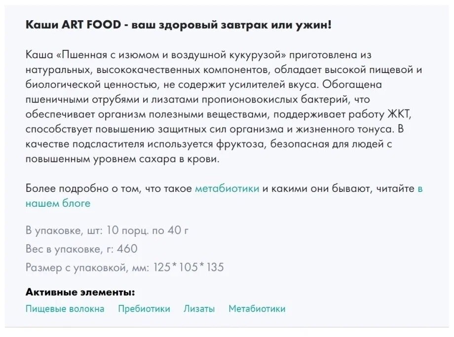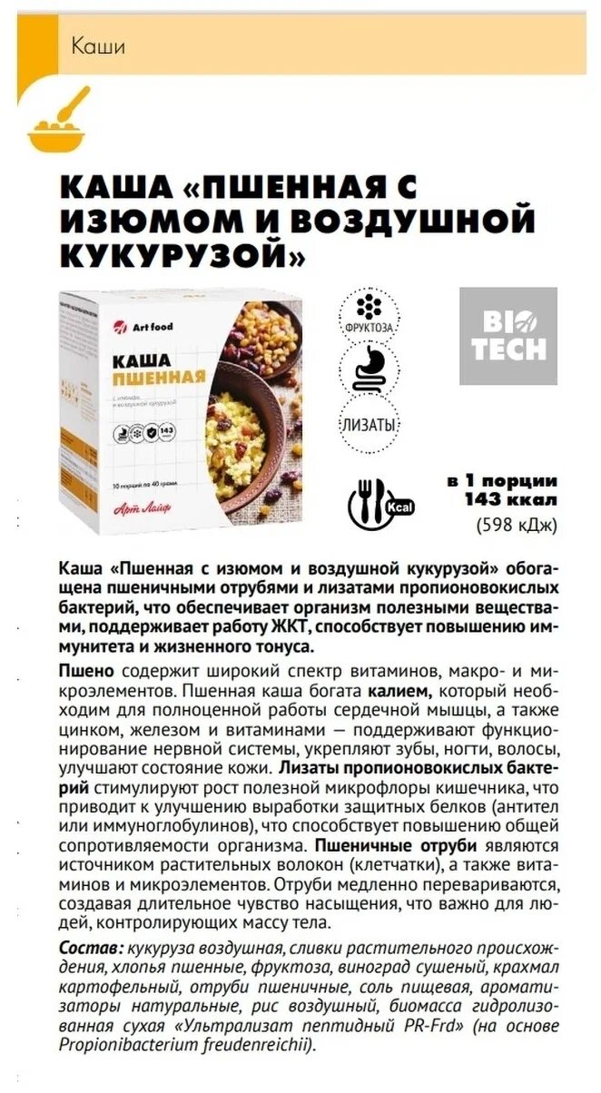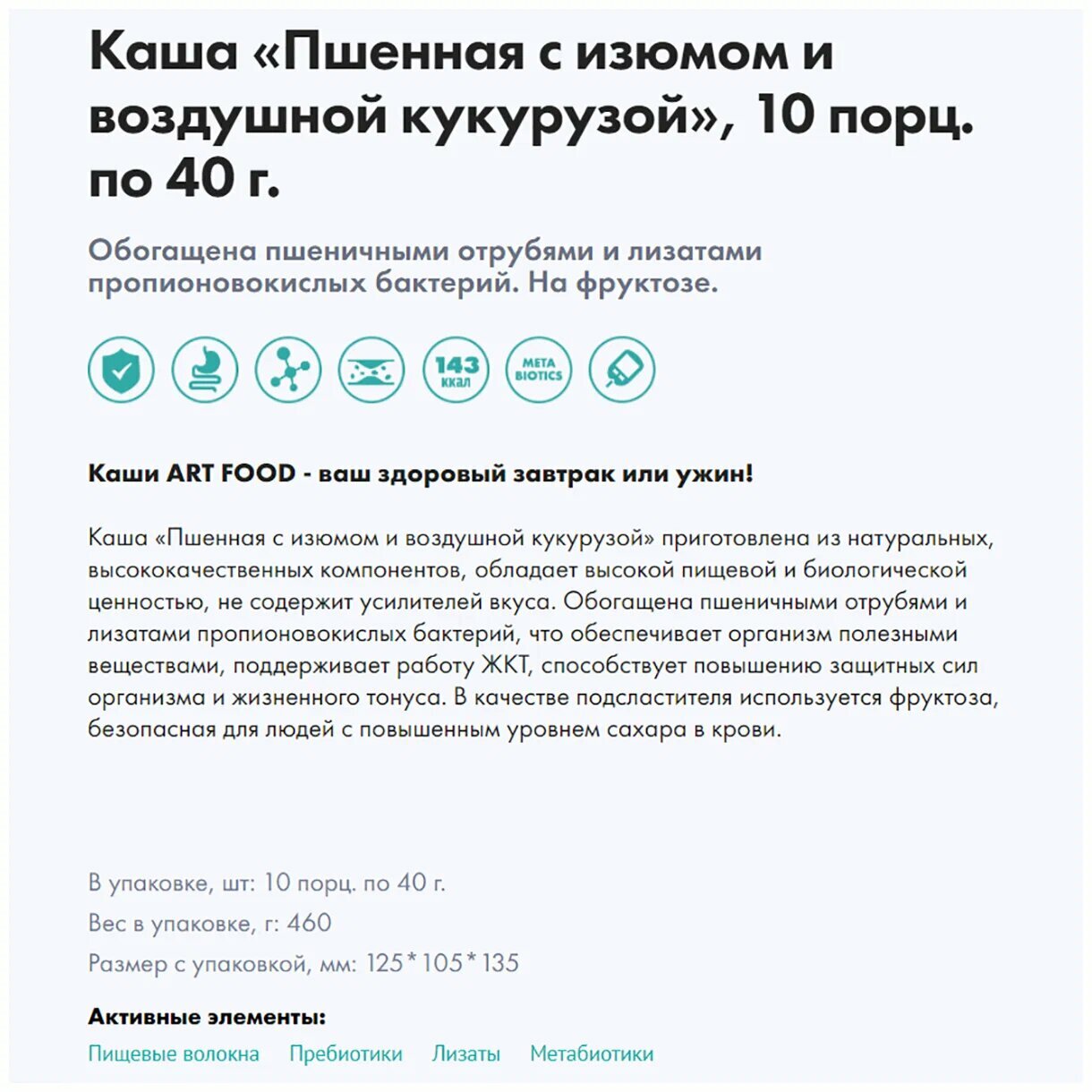 Каша пшенная быстрого приготовления от "Артлайф" с изюмом и воздушной кукурузой интересное: