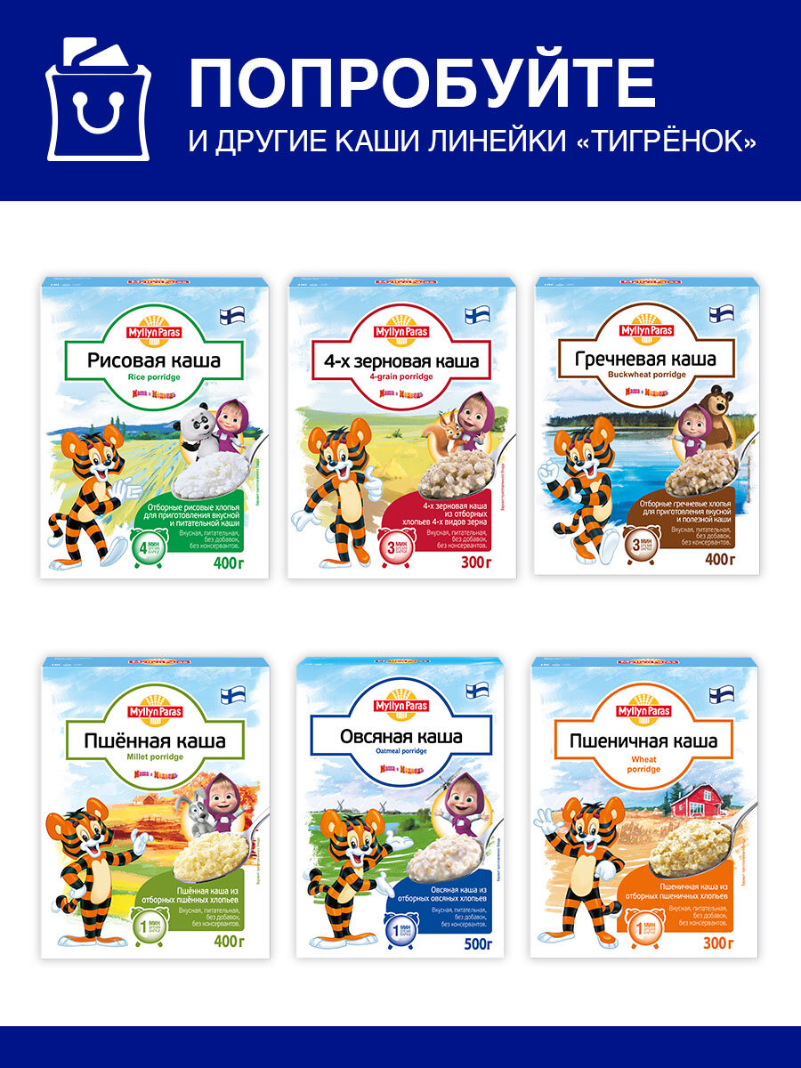 Цельнозерновые овсяные хлопья "Детский геркулес" Маша и Медведь Myllyn Paras (Мюллюн Парас) 1050 г (3 шт) интересное: