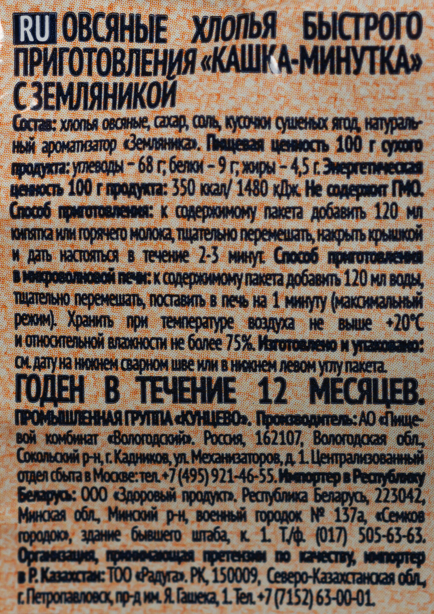 Овсяная каша быстрого приготовления "Кашка-Минутка" с земляникой 25 штук по 37 г. интересное: