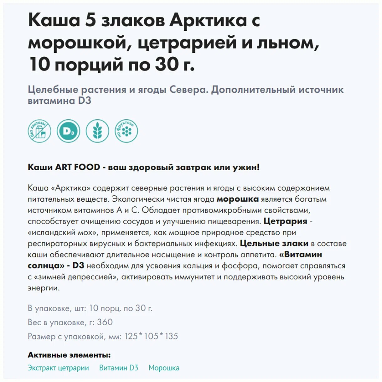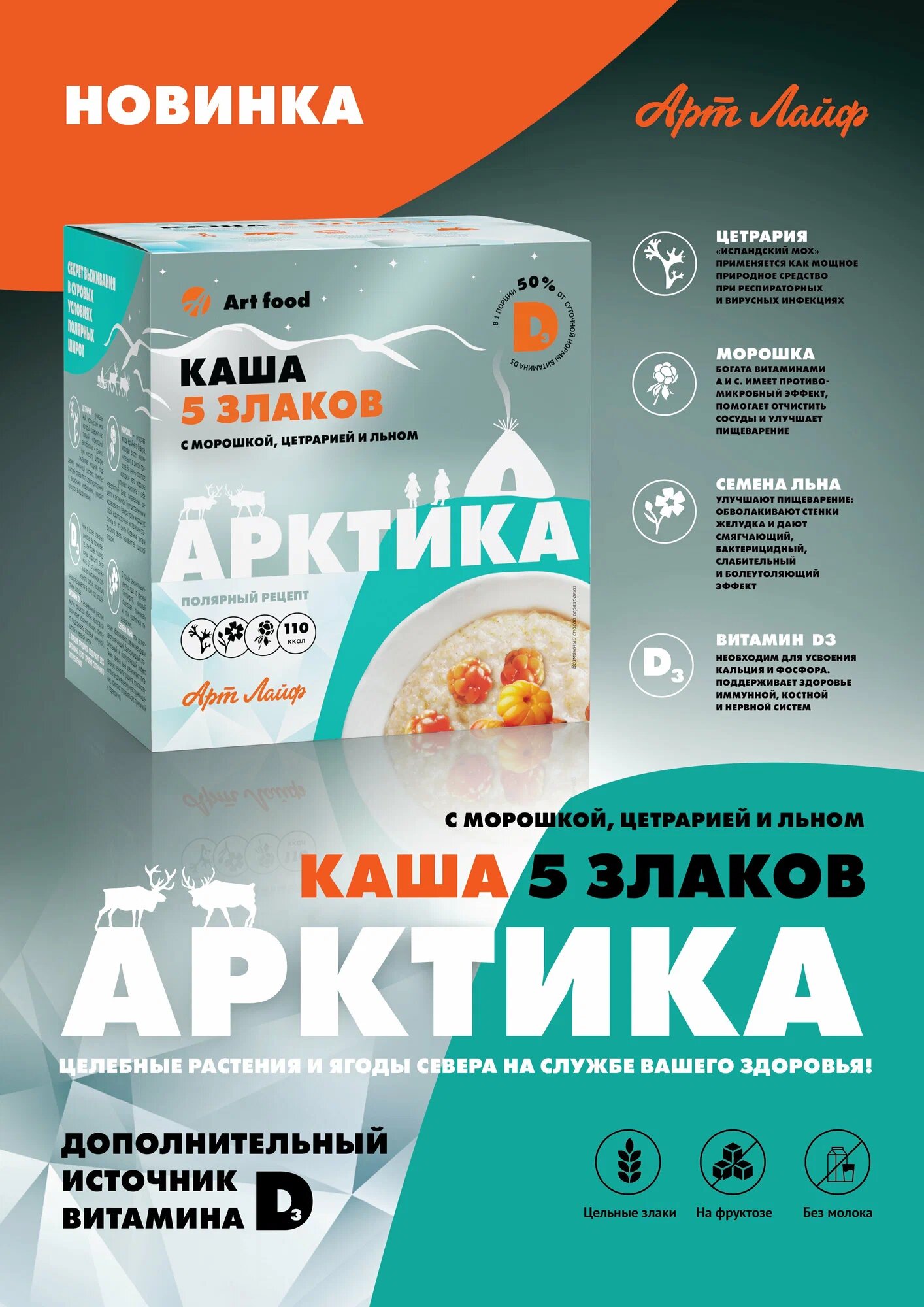 Купить Каша 5 злаков «Арктика» с морошкой, цетрарией и льном