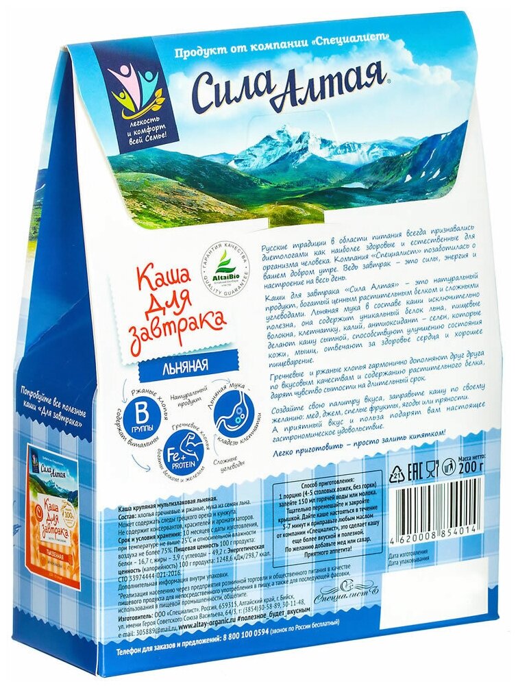 Каша для завтрака льняная, 200 гр, 5 порций интересное: