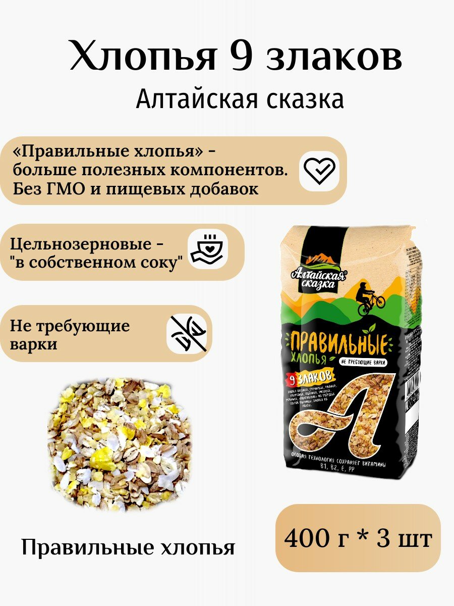 Купить Хлопья 9 злаков "Алтайская сказка", 400 г * 3 шт