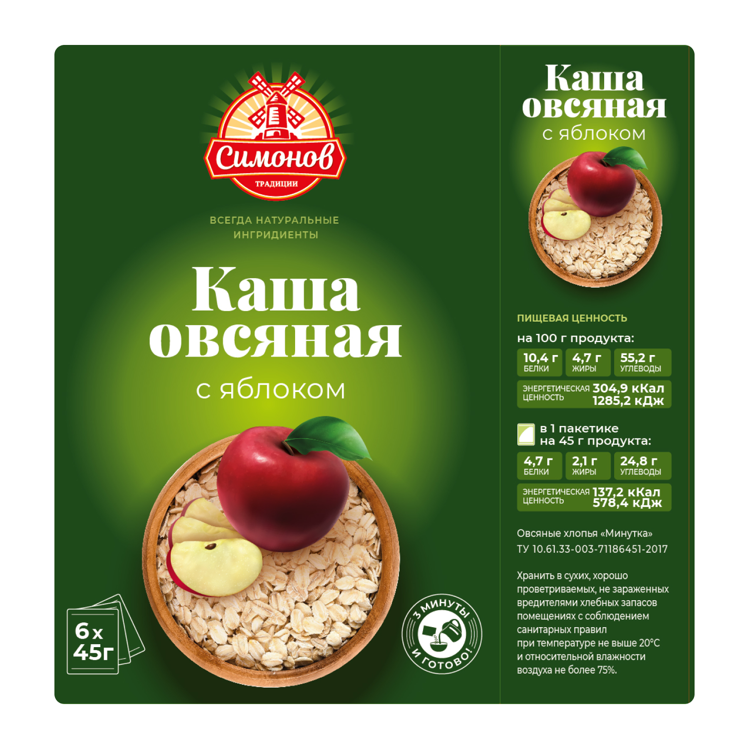 Каша овсяная быстрого приготовления Симонов традиции ассорти (изюм, яблоко, абрикос), порционная, 18 пакетиков по 45 грамм интересное: