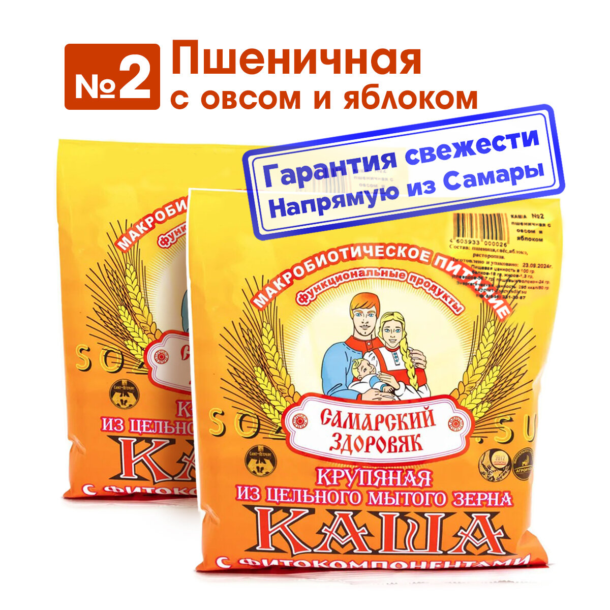 Каша "Самарский Здоровяк" №2 Пшеничная с овсом и яблоком, 240 г х 2 шт интересное: