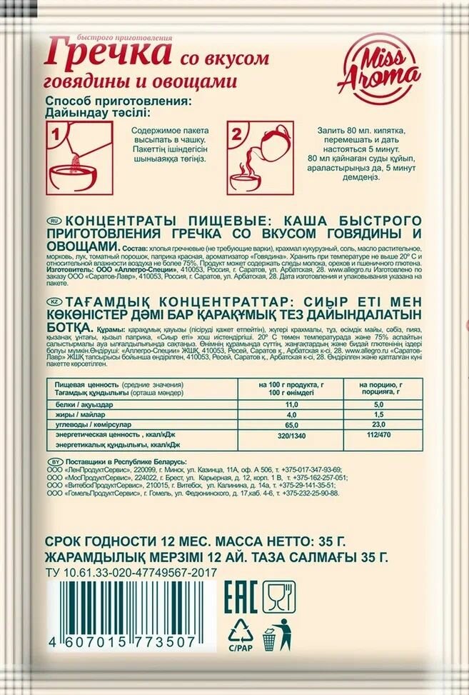 Каша в пакетиках "Гречка с говядиной и овощами" 10 шт. по 35 гр. интересное: