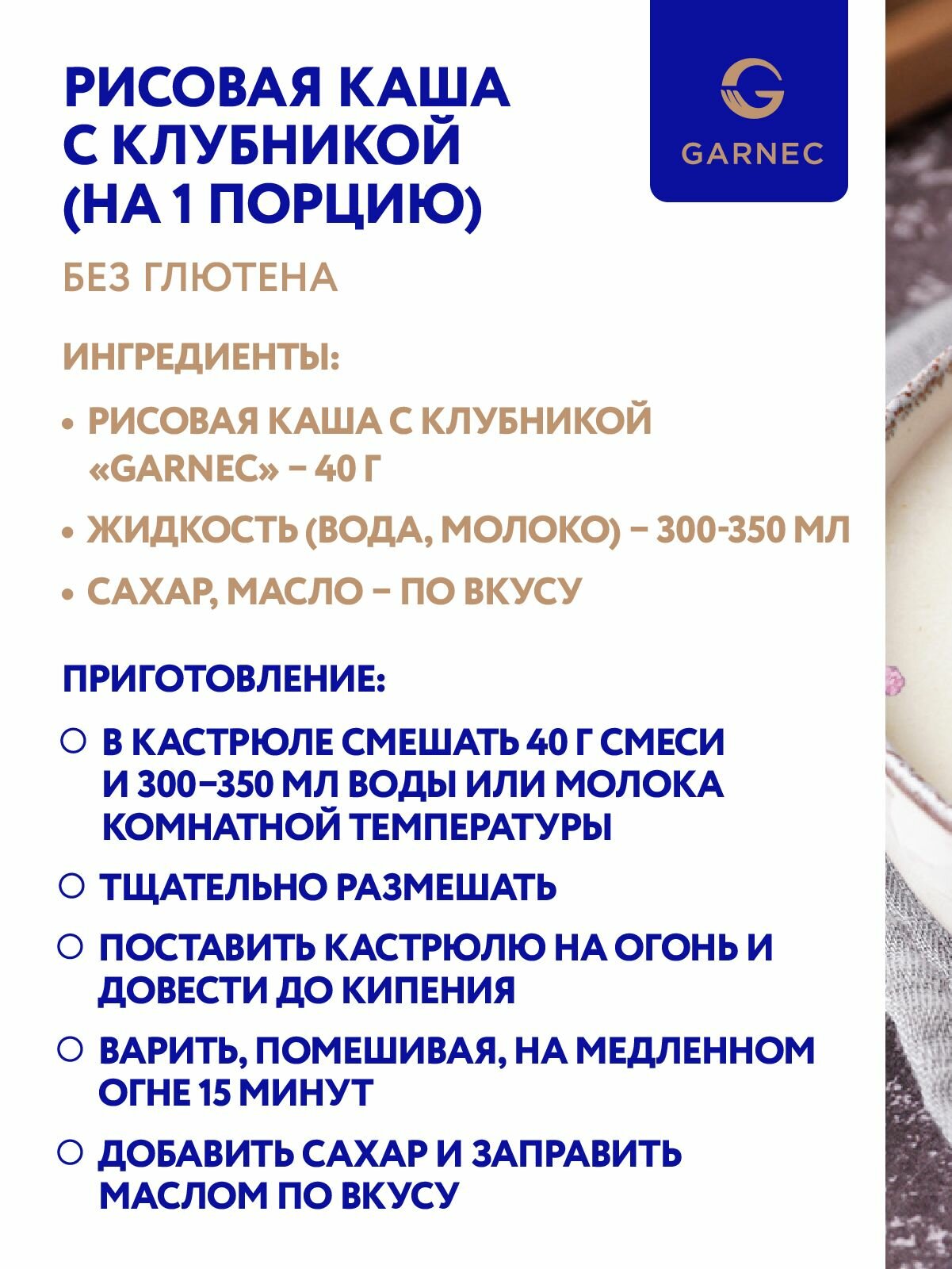 Каша рисовая с клубникой без глютена без сахара Garnec 200 г x 6 шт интересное: