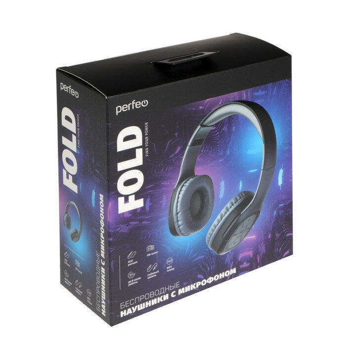 Наушники Perfeo Fold, Bluetooth, полноразм, MP3/FM/AUX, черные (PF_A4912)