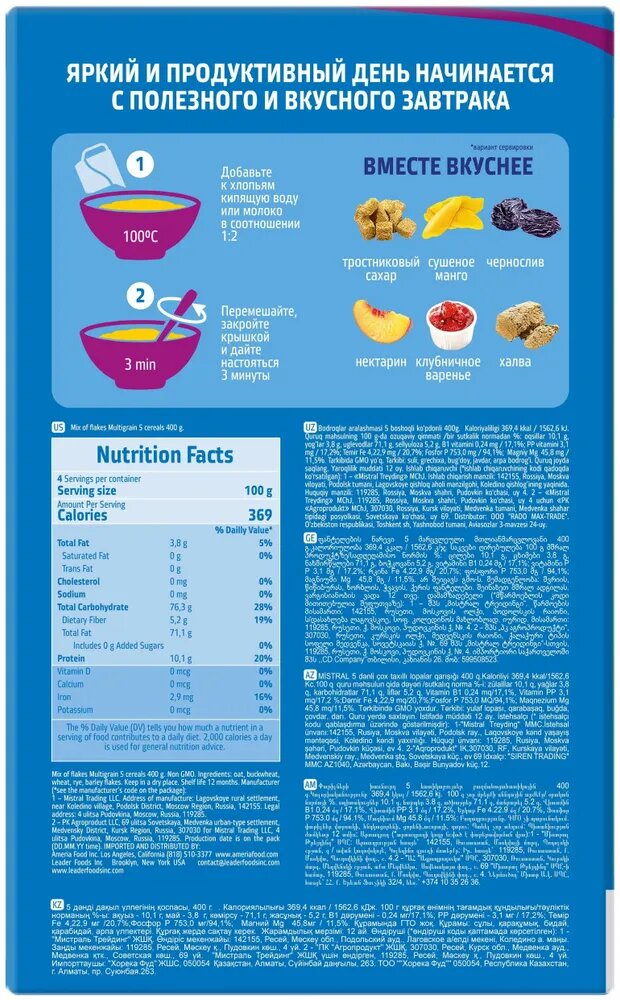 Хлопья Мистраль Смесь 5 злаков 400 г х 4 штуки интересное: