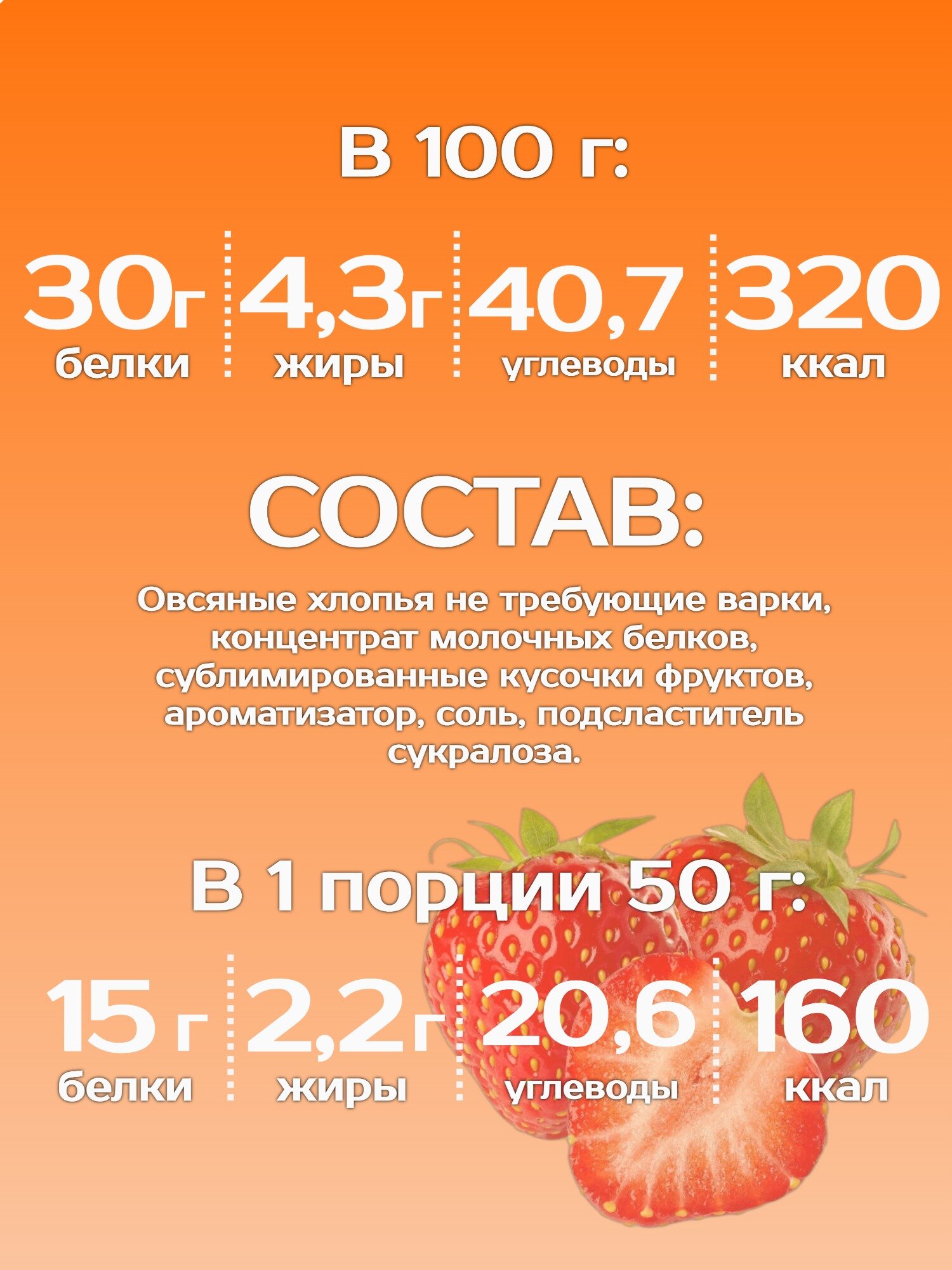 Протеиновая каша быстрого приготовления овсяная "Breakfast Might" с клубникой, 350г интересное:
