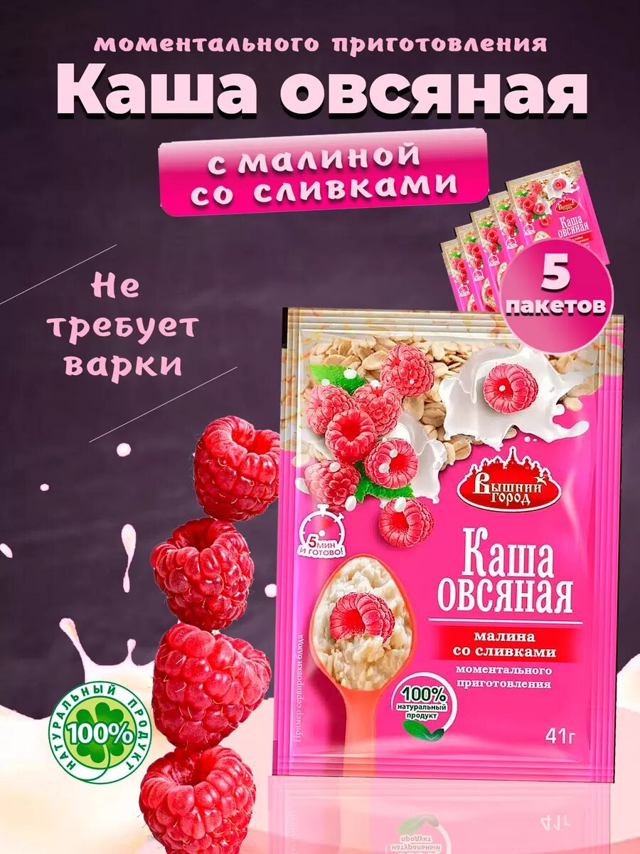 Овсяная каша Вышний город с малиной, со сливками, моментального приготовления, 5 пакетиков интересное: