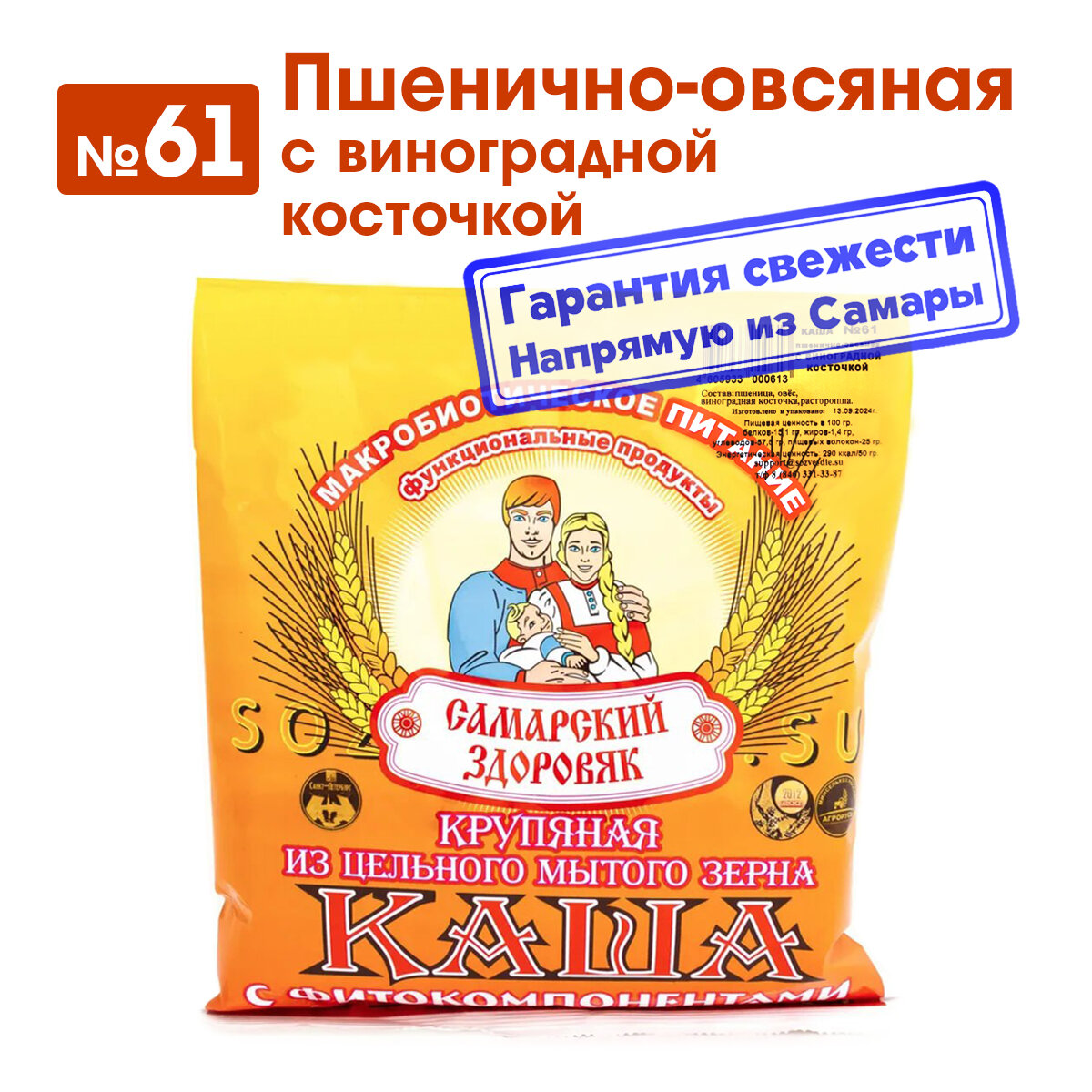 Каша "Самарский Здоровяк” №61 Пшенично-овсяная с виноградной косточкой, 240 г. интересное: