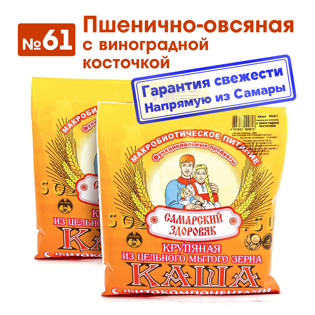 Каша "Самарский Здоровяк” №61 Пшенично-овсяная с виноградной косточкой, 240 г х 2 шт интересное: